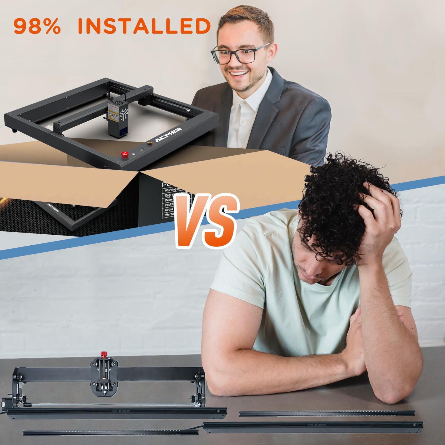 - Strong Structure & Super Easy Installation: ACMER P2 laser engraving machine adopts all-metal structural frame, which is more stable and durable. The whole machine adopts modular design with 95% pre-assembled delivery, which is super simple and can be installed in 1 minute. In addition, we provide 12 months warranty for the engraving machine. If you have any questions, please feel free to contact us.
