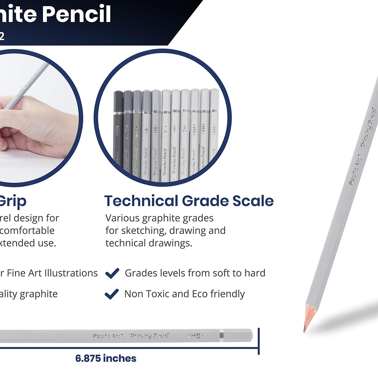 - PREMIUM GRAPHITE PENCILS - Whether you are learning a new drawing skill or creating masterful fine art, Pacific Arc's sketching pencils for artists will yield you the best results. The 12 grades of graphite lead (12b,10b,7b,6b,5b,4b,3b,2b,b,hb,f,2h) will ensure you have the right art pencils for drawing and shading any project.