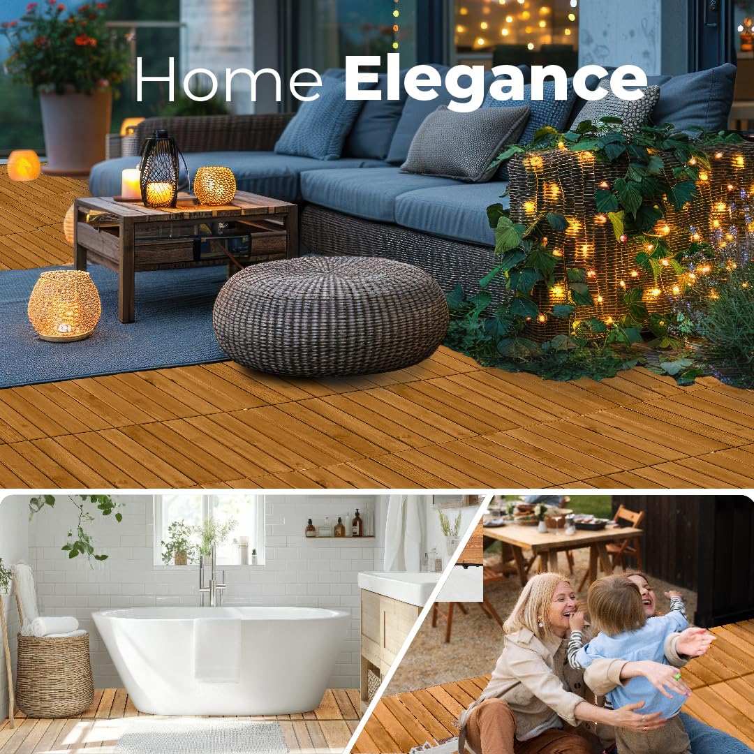 - Versatile Flooring: These 10 interlocking deck tiles offer a natural solid acacia wood surface for outdoor and indoor use on patios, gardens, balconies, and poolsides