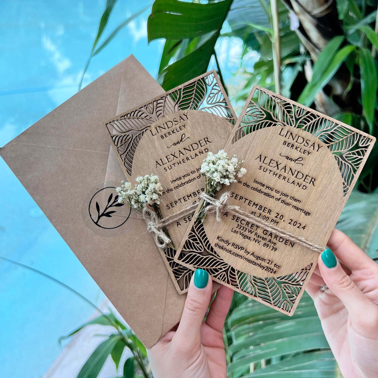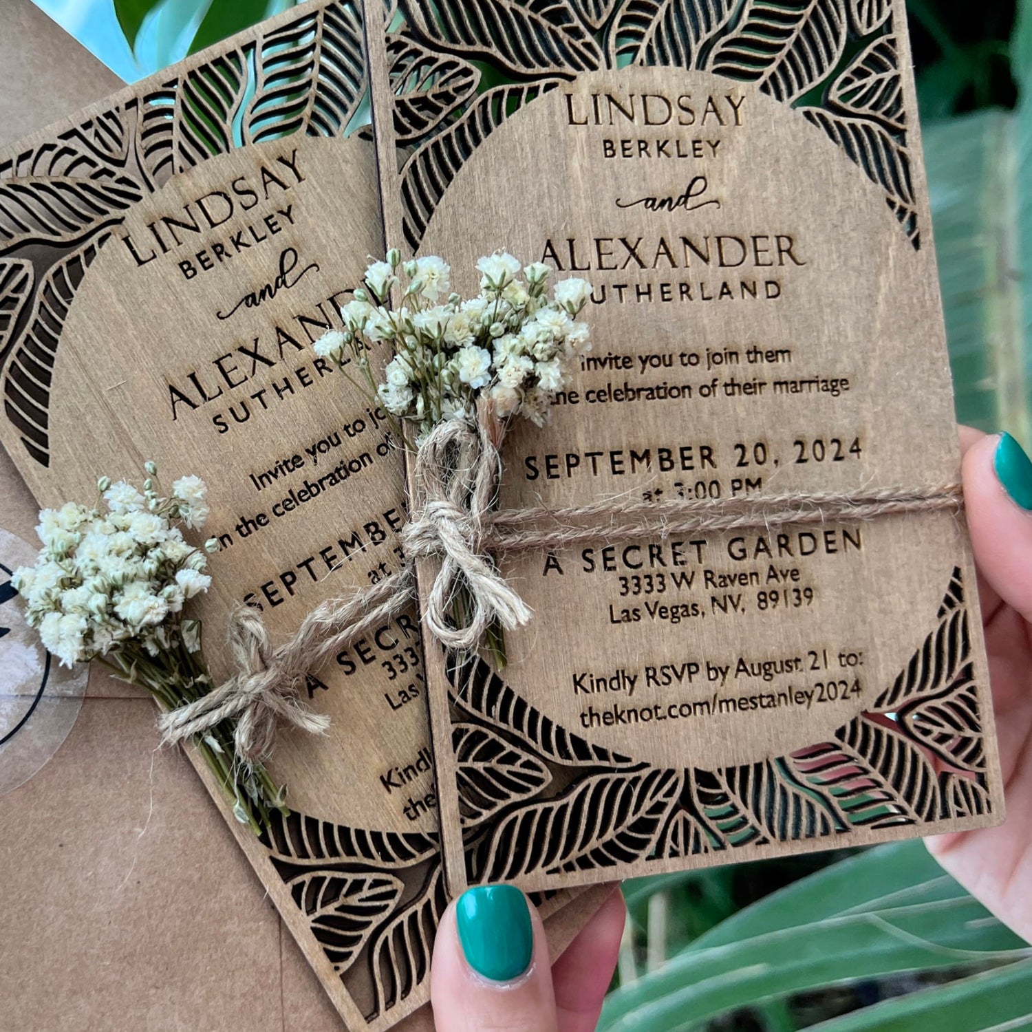 - ★ LONGLASTING KEEPSAKE ★ Our wooden invitations are crafted using the laser engraving technique, making them indelible compared to color-printed papers or acrylics