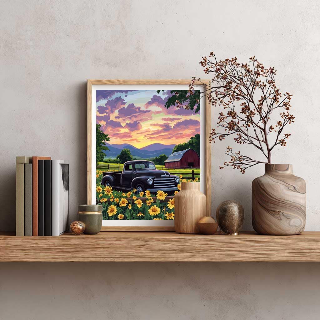 Paint by Numbers Barn, Classic Cars Paint by Number Kit for Adults, Truck Wall Art, Farm Acrylic Painting, Rustic Country Landscape Poster Home Decor - Mountain Flower(16x20inch, No Frame)
