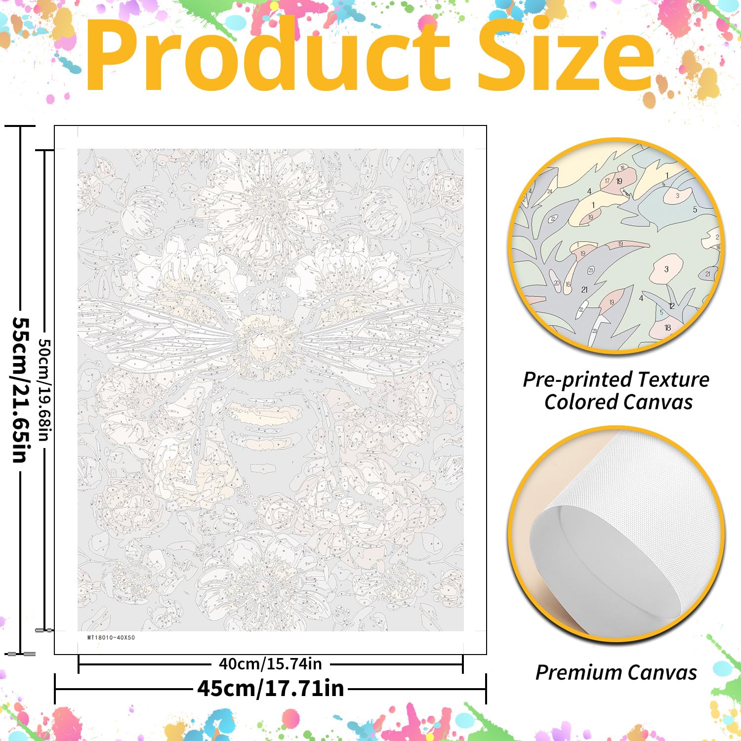 - 【HD Color Canvas】 Our bee digital painting uses HD color canvas, which is different from other monochrome canvases. Our digital areas are easier to distinguish and paint is easier to adhere to them. The color canvas can prevent eye fatigue and make painting easier.