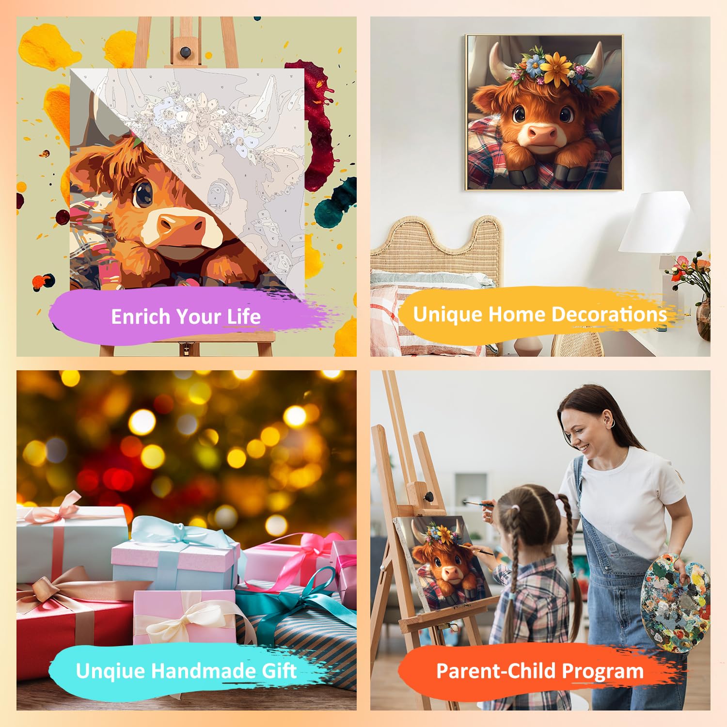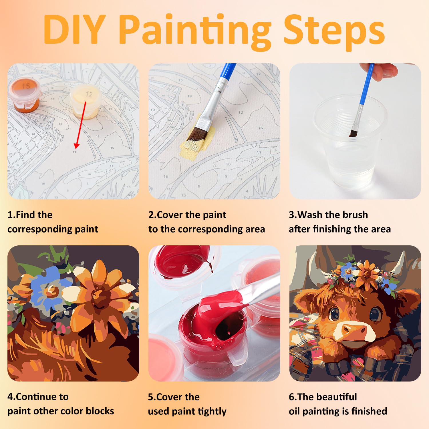 - 【Craft Your Own Painting】 DIY cow paint by number for adults is easy and fun. Just follow the numbers on the canvas with the corresponding paint, and you will get a materspiece that is created by youself.