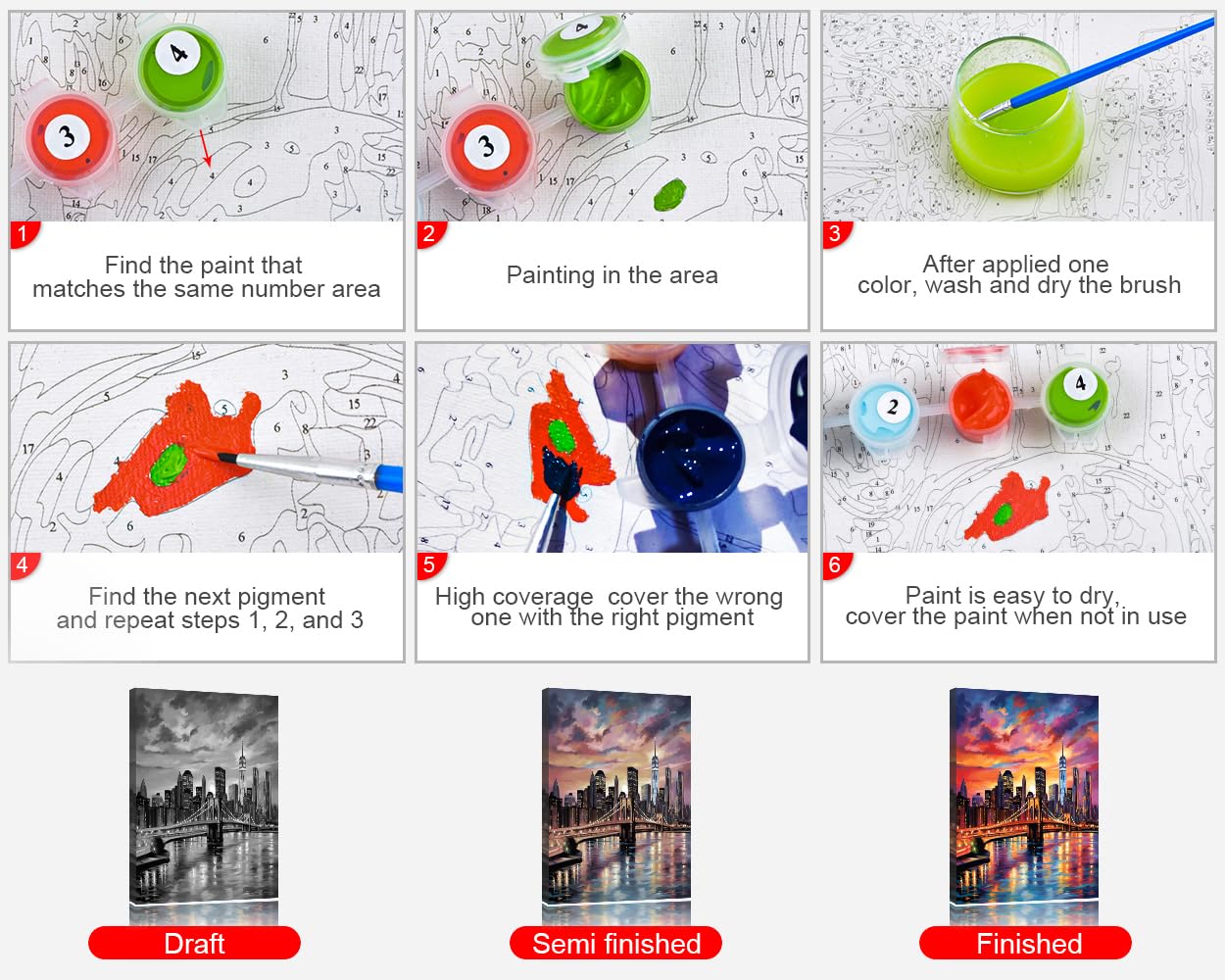 - Easy to Paint: Whether you are an oil painting beginner or an expert, age and skill levels don't matter! With the pre-painted corresponding color blocks and labeled numbers, you can easily finish a masterpiece in less time.