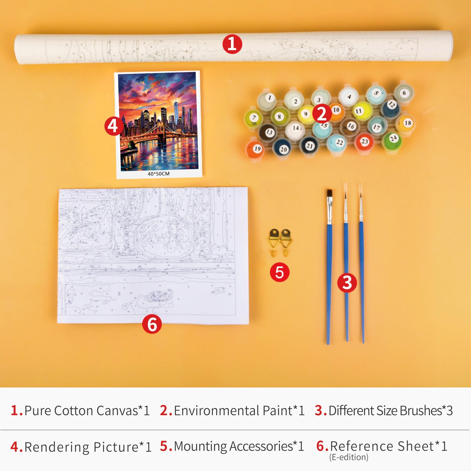 - Paint by Numbers Kit: Includes a 16'' x 20'' unframed canvas, three painting brushes, a set of pigment colors, and a reference image. DIY paint by numbers kits will make you feel the charm and fun of art.