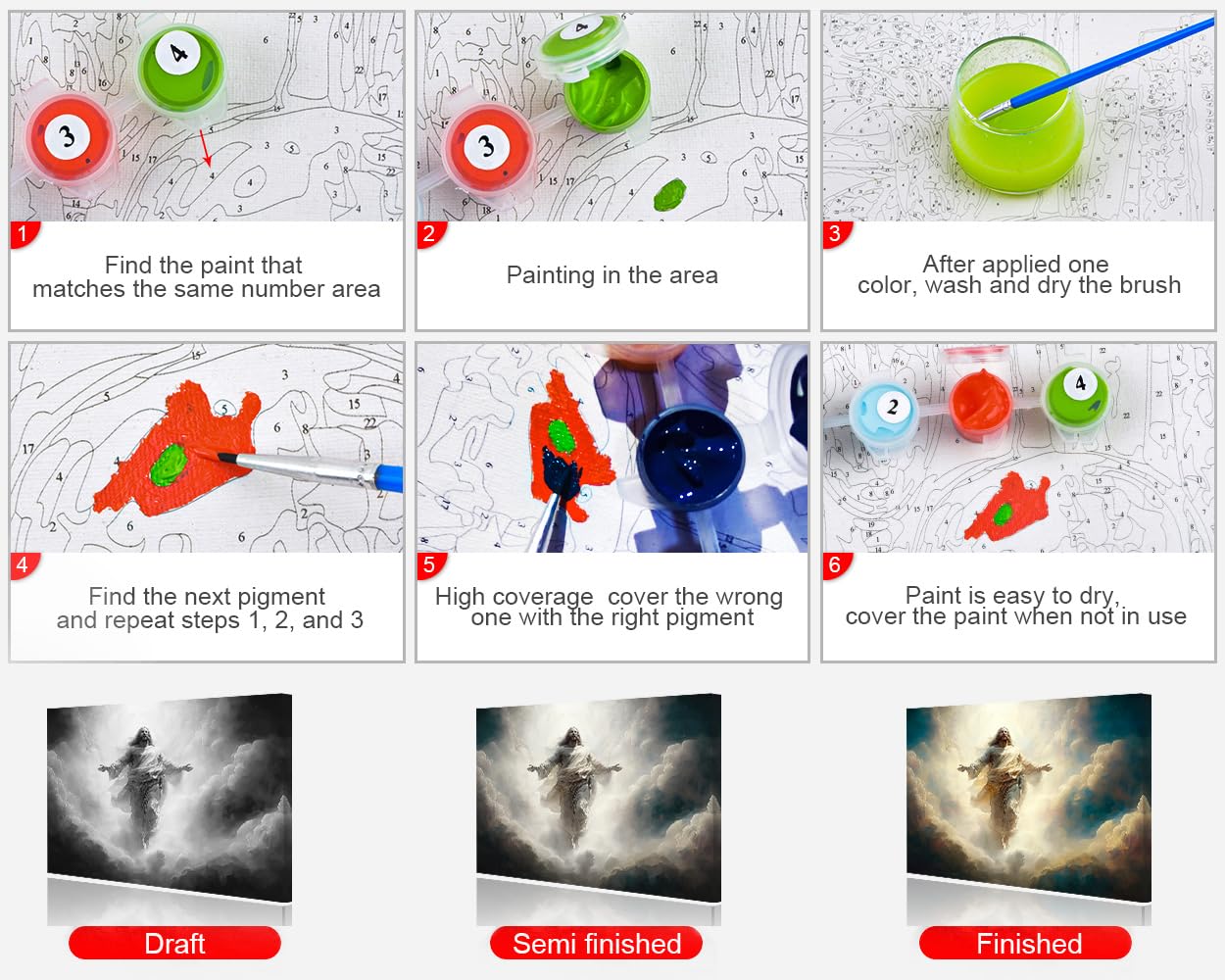 - Easy to Use: Paint by number kit are suitable for adults, children and beginners of all ages. Follow the instructions to writing painting and you can get a lot of fun from it.You complete the adult digital DIY paint and use it to decorate your room.