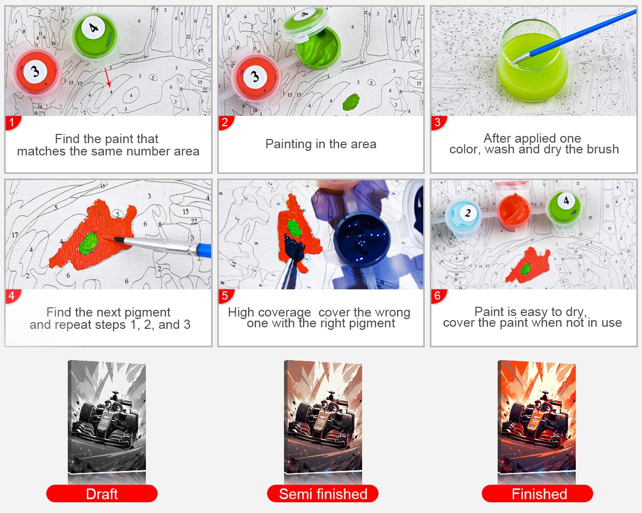 - Paint by Numbers Kit: Includes a 16'' x 20'' unframed canvas, three painting brushes, a set of pigment colors, and a reference image. DIY paint by numbers kits will make you feel the charm and fun of art.