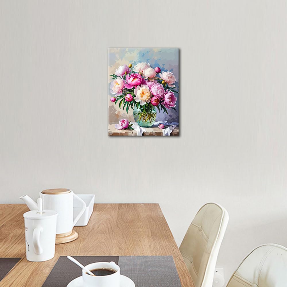 Paint by Numbers Kit for Adults & Adult Paint by Number - Blooming Pink Peonies Botanical Canvas Art, Beginner Floral DIY Painting, Relaxing Arts and Crafts Kit(16x20 Inch)