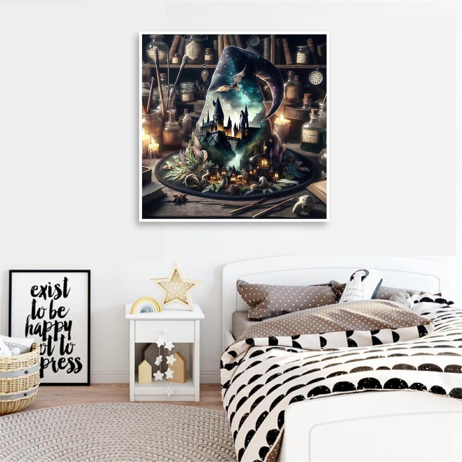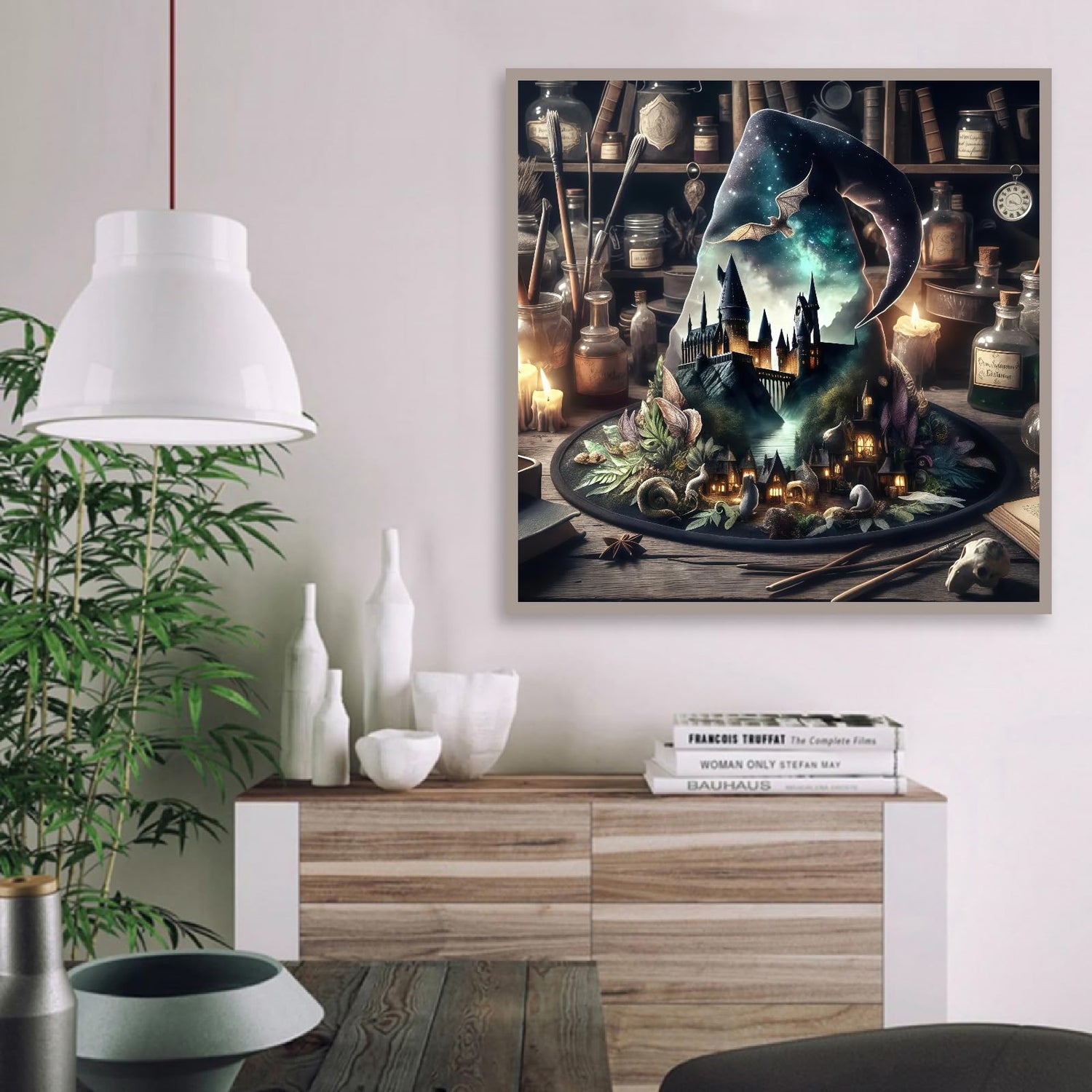 Paint by Numbers Kit for Adults Beginner, Halloween Hat Landscape Adult Paint by Number Kits On Canvas, DIY Oil Painting Kits for Gift Home Wall Decor 16x16 Inch