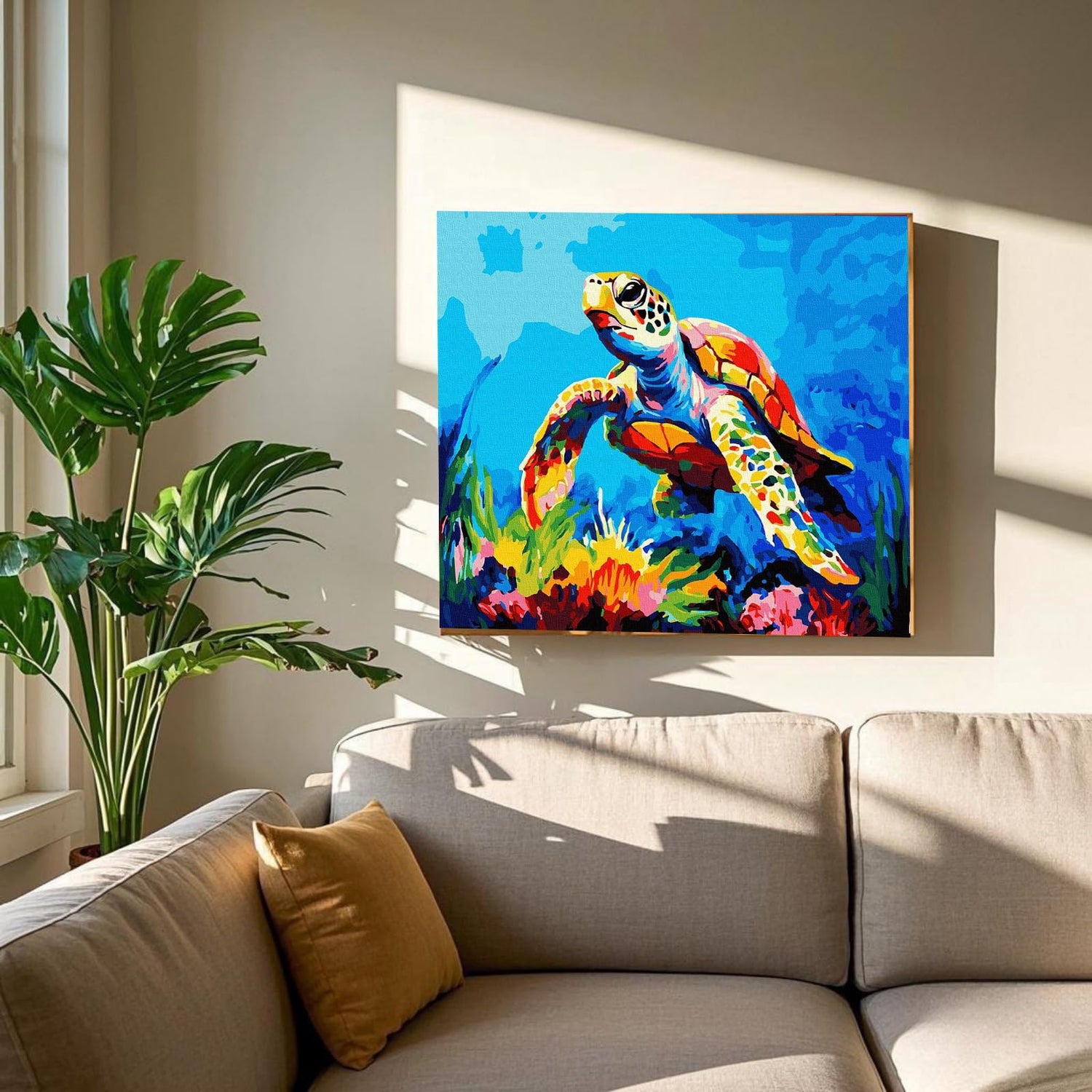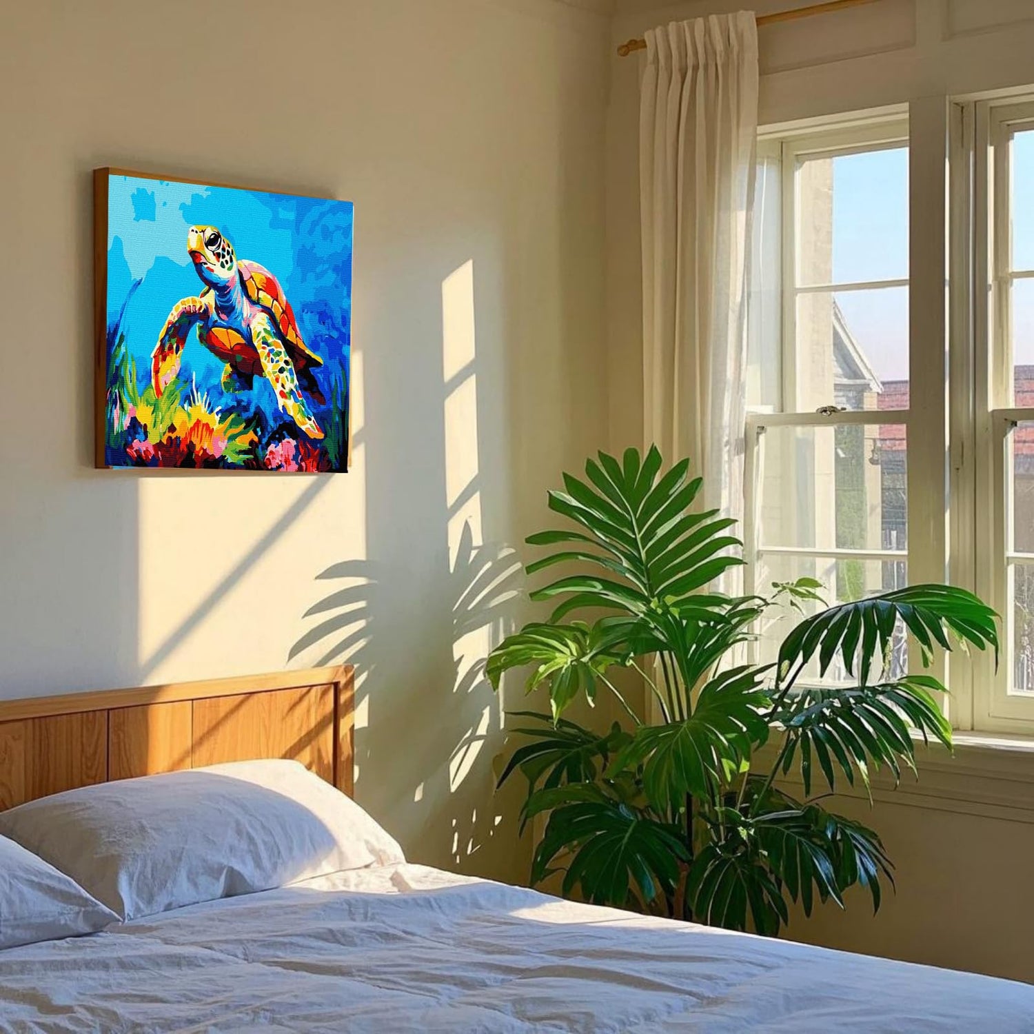 Paint by Numbers Kit for Adults Kids with Frame, Framed Paint by Number Kids Adult Canvas Number Painting by Numbers Arts and Crafts Kits for Adults, Wandering Turtle 12x16inch