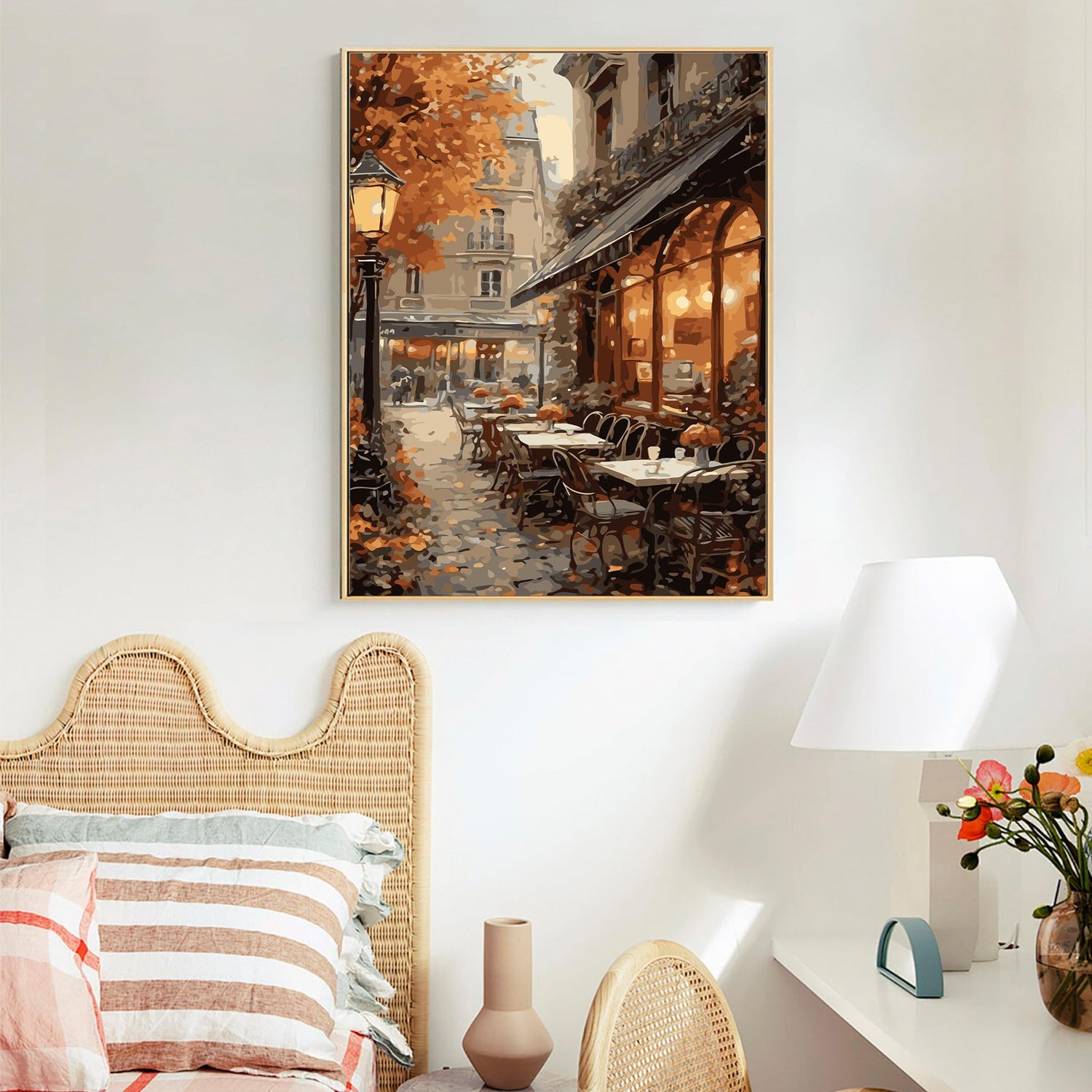 Paint by Numbers Kit for Adults- Street Cafe Adult Paint by Number Kits on Canvas for Beginners, Fall Scene DIY Acrylic Oil Number Painting Kits for Home Wall Decor Gift 16"x 20" (without Frame)