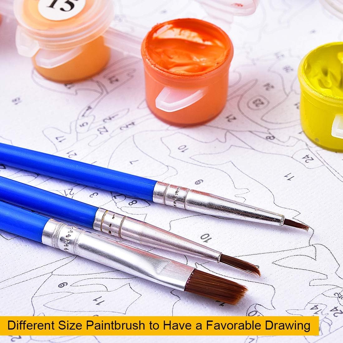 - Package Include: Paint by numbers kits includes a 12 x 16 inch(30x40cm) canvas (frameless), 3 nylon brushes, a complete set of acrylic paints, a reference sheet and a sample oil painting.