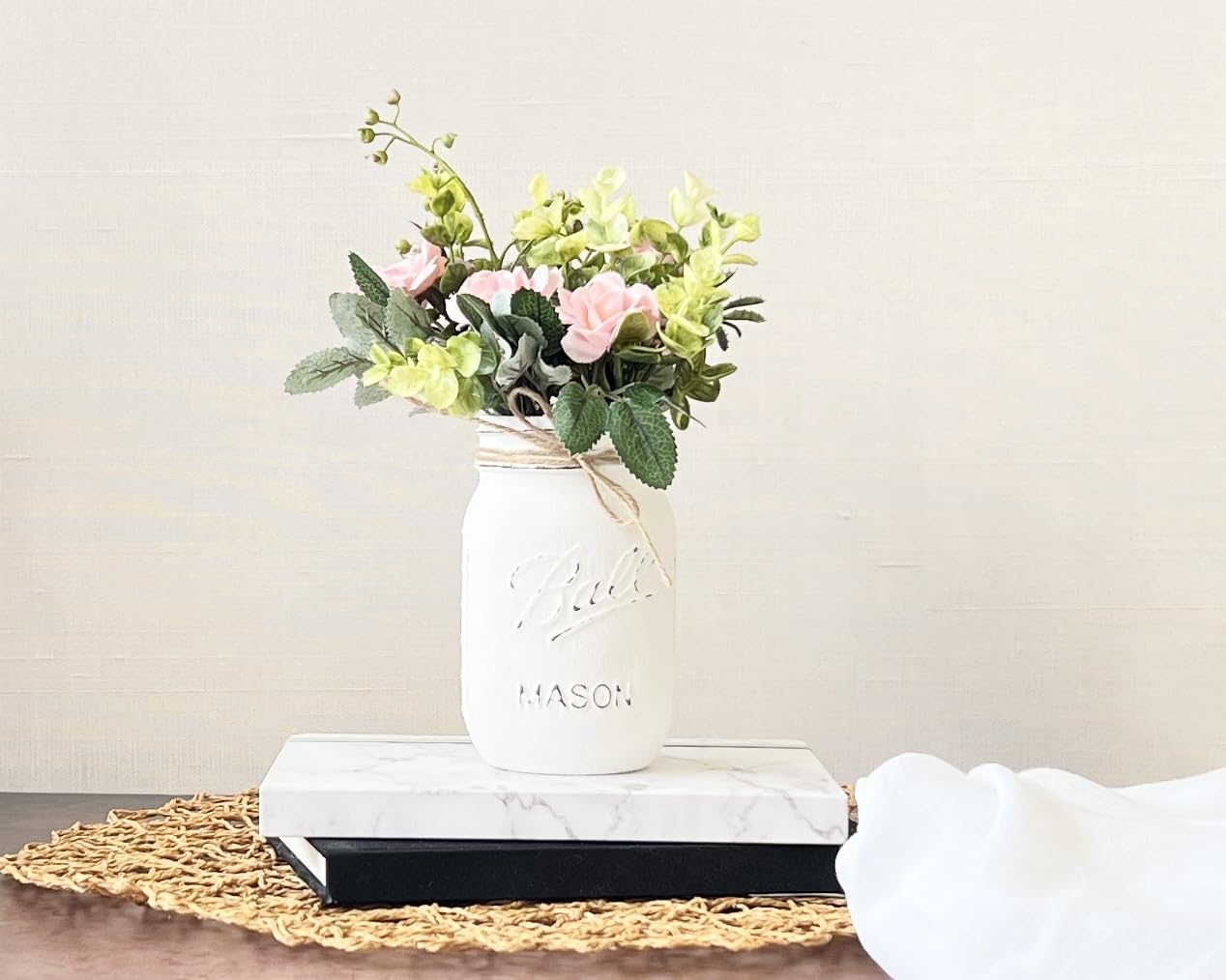 - HIGH QUALITY MATERIALS: I only use brand name Mason Jars for my sets! I hand paint and distress these glass jars for a rustic look! High Quality artificial flowers are beautifully arranged to fit the jar!