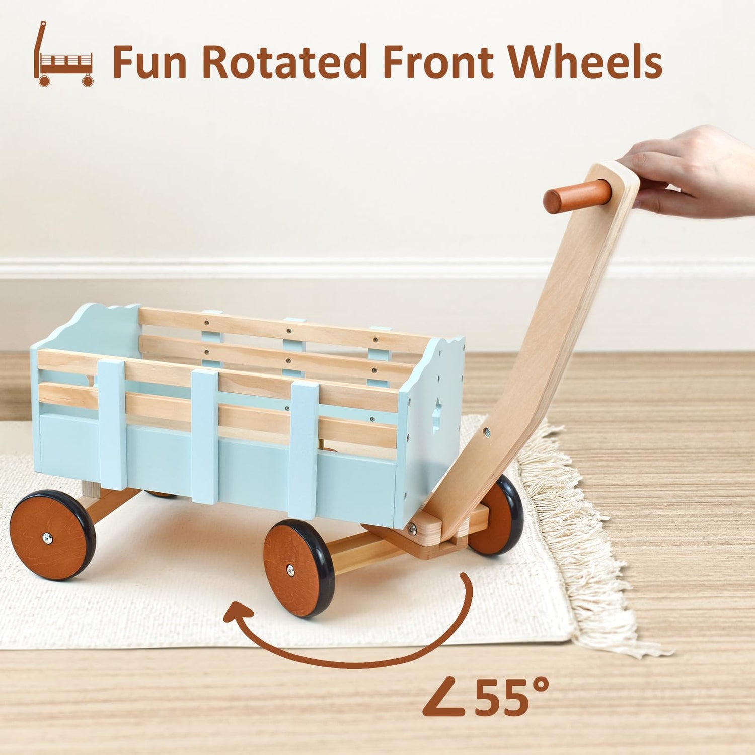 PairPear Kids Wagon Toy,Wooden Toys Cargo Walker Cart Wagon Stroller,Toddler Push and Pull Baby Walker Gift for Babies Boys and Girls