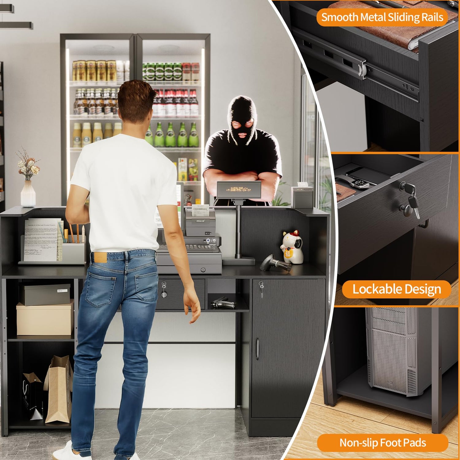 - 【Privacy and Security Design】This Front Desk is equipped with lockable drawers and top counter baffles, providing ample privacy space, while leaving space on both sides of the drawer for you to store some self-defense items. These thoughtful designs are our attention to your privacy and safety.
