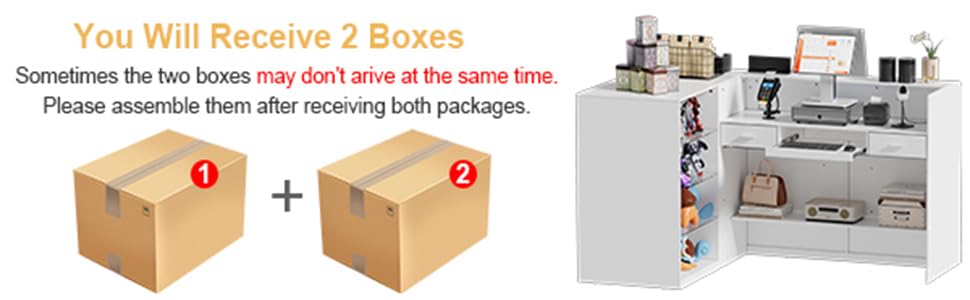- 【Easy to Assemble & Satisfaction】 - This reception desk offers you enough space for stuff. with detailed installation instructions and hardware tools, each piece is labeled, follow the steps of enclosed instruction.No need to worry about receiving defective product or missing parts. Any question, just click “contact seller” to get satisfied solutions. Hope you a nice day~