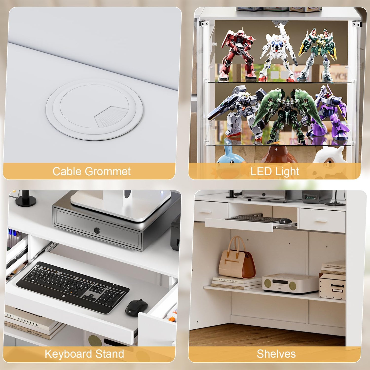 - 【Ample Storage】- 47.7"W * 15.7''D large desktop offering excellent room for your computer, files, papers, or decorations to keep your work essentials organized. There are 2 drawers and 5 shelves shelves in the working area, the countertop allows to place your small printers and documents.Wraparound side panels create a more private area so you can focus on the task at hand.Moreover, the spacious front counter space allows for easy transactions and interactions with clients, facilitating efficient workflow in high-traffic areas like clinics, salons, retail stores, or office lobbies.