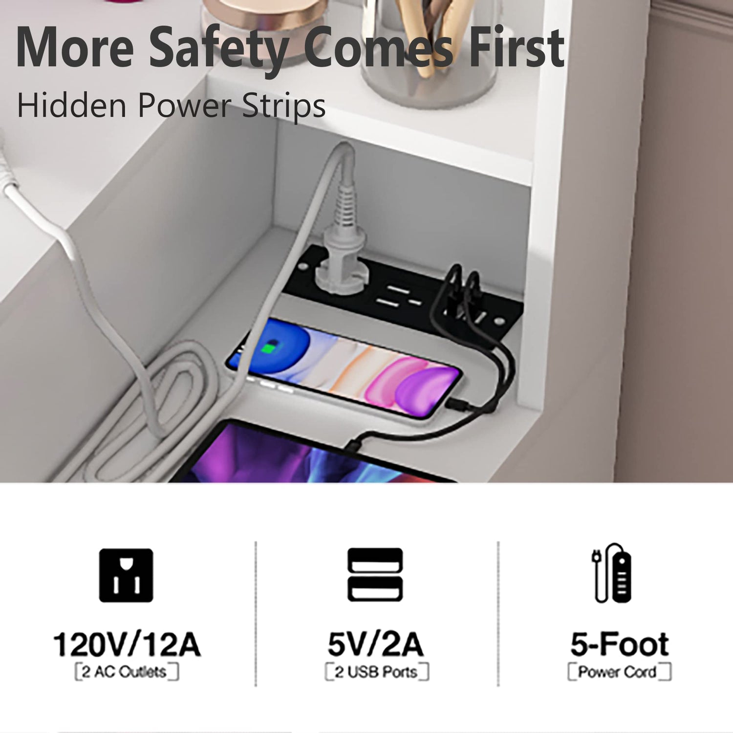- ❤❤【Vanity Set with USB Ports & Outlets】 To avoid the trouble of frequently pulling the socket plate, PAKASEPT dresser is equipped with a built-in power supply, containing 2 USB ports and 2 sockets. It can charge your mobile phone in time, and at the same time use a hair dryer or curling iron to create a more perfect makeup, and can also charge humidifiers, desk lamps and other small electrical appliances, making your life more convenient and convenient
