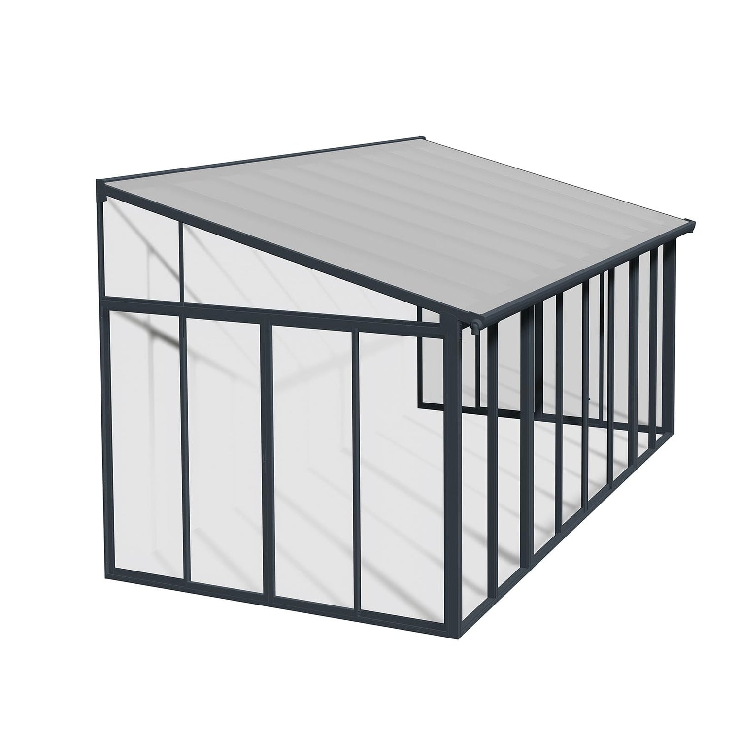 Details: Introducing the SanRemo Walled Outdoor Canopy from Canopia by Palram. The ultimate DIY sun room patio enclosure for backyard gatherings, patio relaxation, and outdoor events. This top-tier sun house is designed to provide protection, shelter, and style to your outdoor space, all while protecting your outdoor space from the elements. The San Remo Patio Enclosure is a sophisticated home addition providing you an affordable and maintenance free space for relaxation. Featuring high impact crystal-clear acrylic wall panels and Palram - Canopia’s virtually unbreakable polycarbonate roof system, you have a pristine view outside of the elements. A reinforced corrosion resistant aluminum frame adds to the ambiance and durability making the San Remo Patio Enclosure a stout prefab house extension for your home. Three lockable double sliding doors safeguard your new space and provide several easy access points. Relax with a good book or entertain family and friends in your new backyard space. Designed for the proficient Do-It-Yourself enthusiast, each purchase comes as a kit. Researching local building requirements or consulting with a general contractor is recommended prior to installation. The 10' x 18' outdoor aluminum pergola with canopy features a sturdy metal frame construction, ensuring durability and stability. The Gray polycarbonate canopy and crystal clear polycarbonate walls are fortified with to add to its aesthetic appeal while providing maximum protection against the elements. It's a 10ft. x 18ft. lean-to kit that's built to withstand high winds, making it the best outdoor sunroom cover for high winds. Designed with your convenience in mind, the Palram SanRemo patio enclosure kits are easy to assemble with a DIY-friendly design. The SanRemo porch enclosure system also doubles as a greenhouse, prefab pool house, add a room, deck cover and walled patio roof. This Palram Canopia DIY patio kit is the perfect addition to your home.