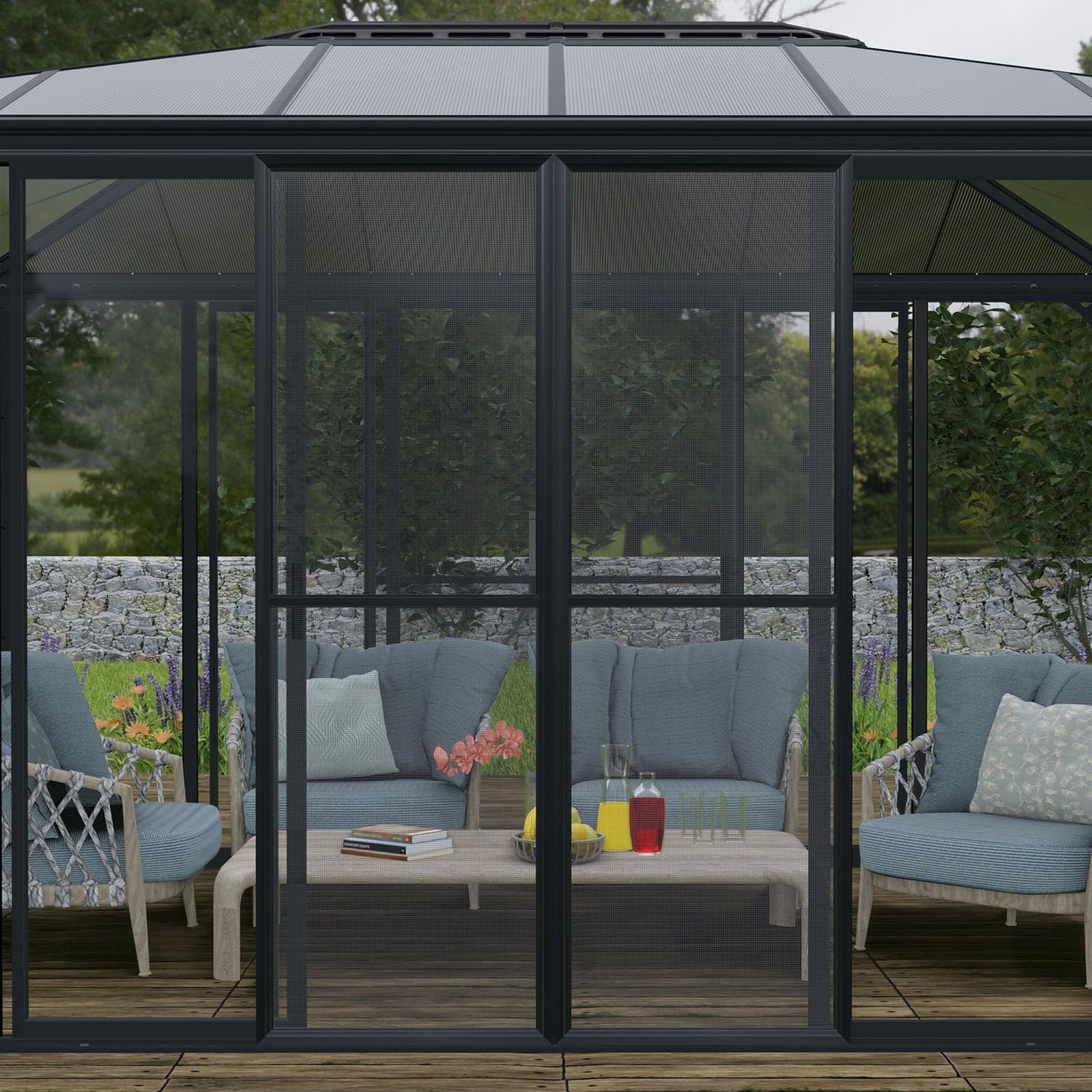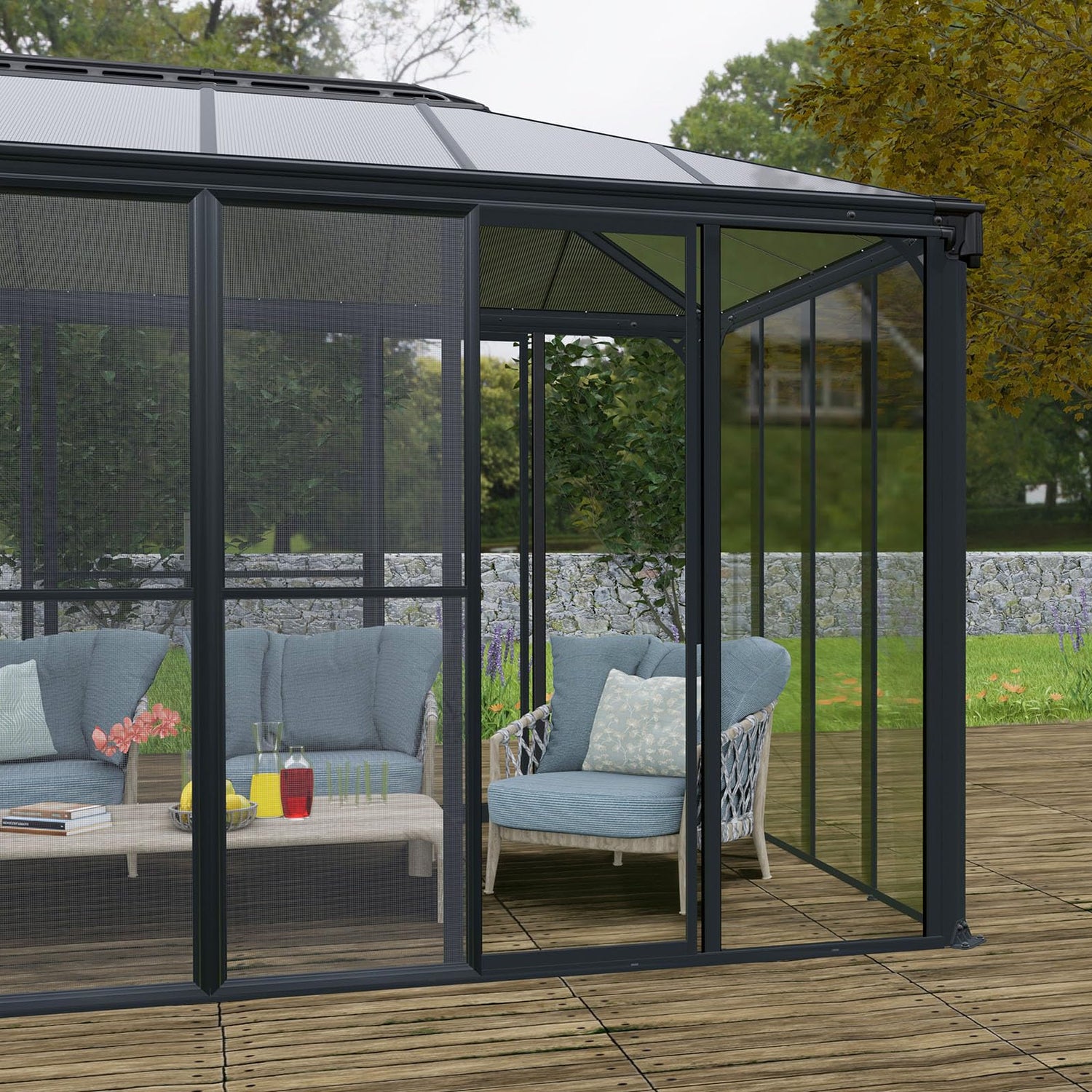 Palram - Canopia Sanremo 10x18 Enclosed Patio Cover with Screen Doors, Gray DIY Sunroom Kit Lean to Gazebo with Walls to Cover Patio Furniture, Deck, & Porch, UV Protected Polycarbonate Shelter