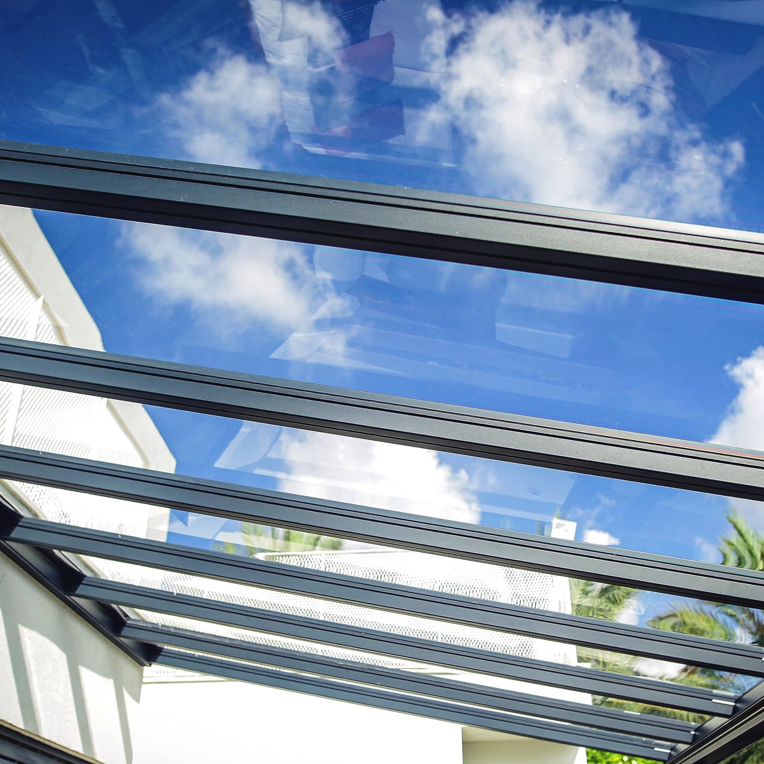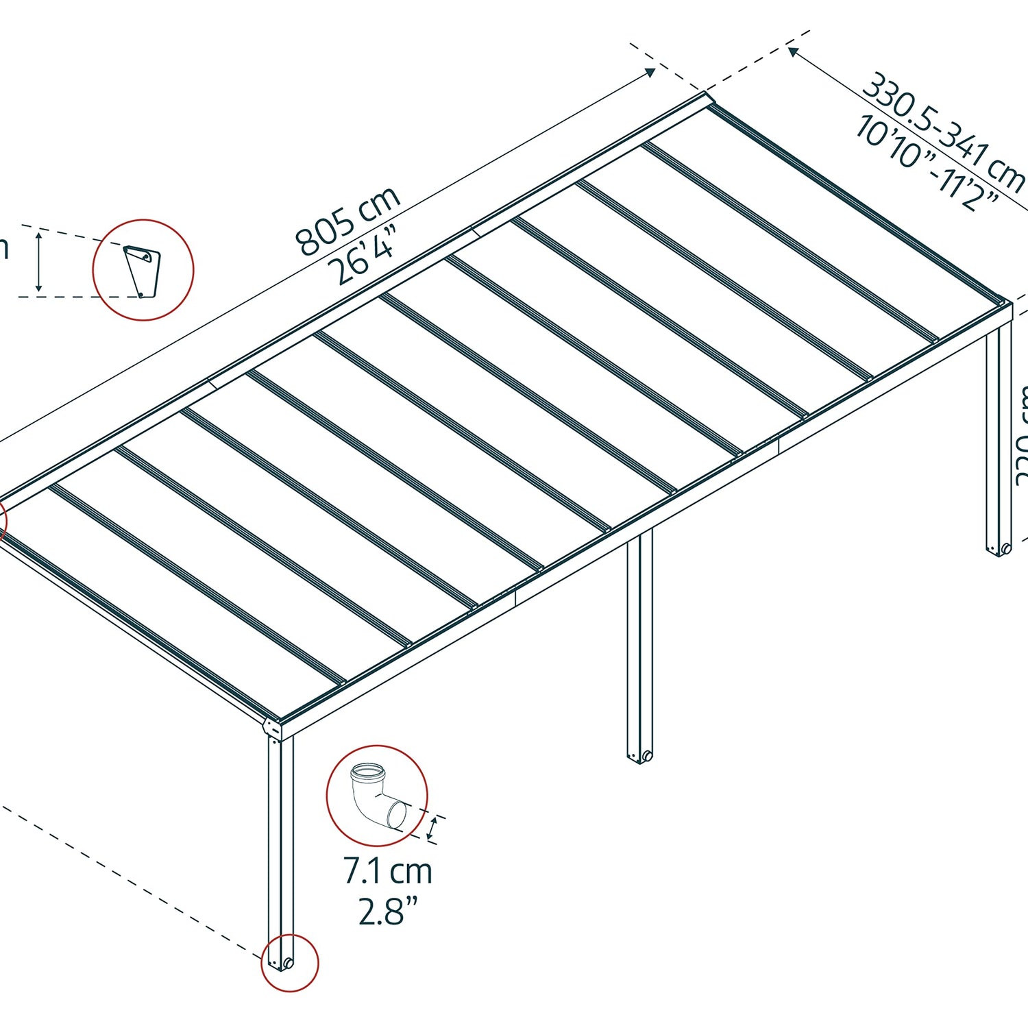 Introducing Palram-Canopia's Stockholm Outdoor Canopy, the ultimate DIY Patio Cover Kit for backyard gatherings, patio relaxation, and outdoor events. This top-tier sun canopy is designed to provide protection, shelter, and style to your outdoor space, all while protecting your outdoor space from the elements. The 11' x 27' lean to gazebo hardtop features a sturdy metal frame construction, ensuring durability and stability. The aluminum and polycarbonate canopy is fortified with white panels to add to its aesthetic appeal while providing maximum protection against the elements. It's a 11ft. x 27ft. lean-to kit that's built to withstand high winds, making it the best shade cover for high winds. Designed with your convenience in mind, the Palram Stockholm gazebo kit is easy to assemble with a DIY-friendly design. The Stockholm metal and polycarbonate awning also doubles as a door awning, porch canopy, deck cover and covered patio. The outdoor pergolas and gazebos provide ample shade and UV protection to keep you cool and comfortable during hot sunny days. Relax, entertain, and dine in style under the Stockholm porch awning by Palram - Canopia. The Stockholm’s sophisticated design features clean-lined, aluminum frame profiles and crystal-clear polycarbonate roof panels combined into a precision-engineered structure that will last for years. The solid polycarbonate roof panels are clear as glass, provide 100% UV protection and are virtually unbreakable. The heavy-duty aluminum frame and galvanized steel connectors ensure a leak-proof seal with the roof panels and incorporate an integrated gutter system that channels water away from the structure. Compatible cloth ceiling shades, sold separately, provide additional shade coverage and an element of style and comfort. Add value and beauty to your home in a single weekend with the Stockholm DIY patio roof kit from Canopia by Palram - then sit back and enjoy your new outdoor space all year long!