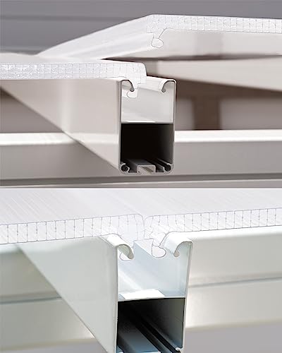 Introducing Palram-Canopia's Feria Outdoor Canopy, the ultimate DIY Patio Cover Kit for backyard gatherings, patio relaxation, and outdoor events. This top-tier sun canopy is designed to provide protection, shelter, and style to your outdoor space, all while protecting your outdoor space from the elements. Enjoy the outdoors with Canopia by Palram’s Feria Patio Canopy. The white UV protected polycarbonate roof panels protect you, your family and patio furniture from harsh UV rays while still allowing sun to shine through. The white powder coated aluminum frame provides protection from rust and discoloration. Feria framing easily adjusts to fit your patio’s unique size. This high performance structure was designed to be simply assembled by 2 people, using the Click N’ Lock roofing system for safe and simple assembly, locking the glazing between the structure rods and preventing water from penetrating the glazing. It requires no experience, no special skills and no special tools. The Feria provides your family with an elegant and sturdy haven for years to come. The 10' x 24' outdoor sun shade features a sturdy metal frame construction, ensuring durability and stability. The aluminum and polycarbonate canopy is fortified with white panels to add to its aesthetic appeal while providing maximum protection against the elements. It's a 10ft. x 24ft. lean-to kit that's built to withstand high winds, making it the best shade cover for high winds. Designed with your convenience in mind, the Palram Feria gazebo kit is easy to assemble with a DIY-friendly design. The Feria metal and polycarbonate awning also doubles as a carport, door awning, porch canopy, deck cover and covered patio roof. The outdoor pergolas and gazebos provide ample shade and UV protection to keep you cool and comfortable during hot sunny days.