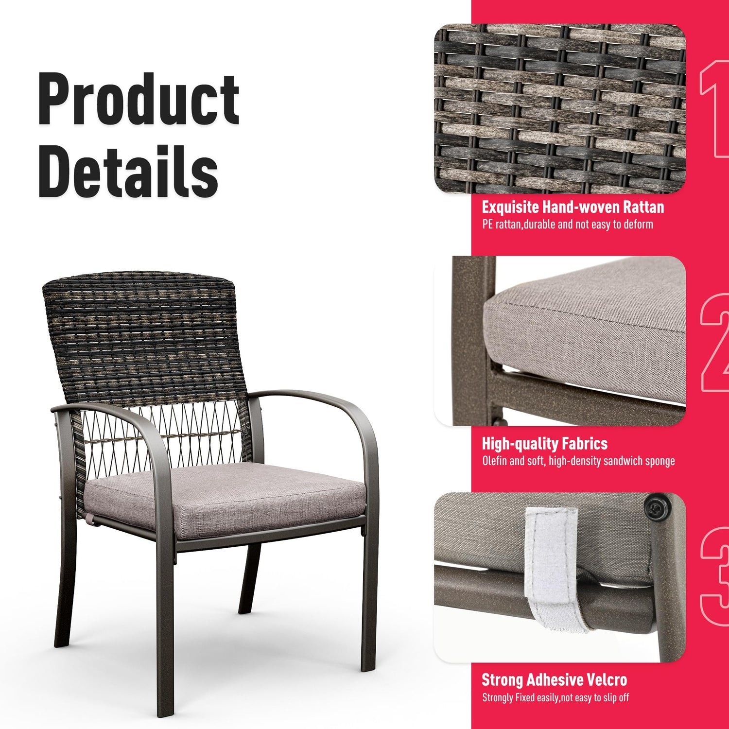 - 【Weather Resistant Material】 This dining table set has a stable and sturdy iron construction, which can be used for long time. And the premium PE rattan materials can adapt to different weather because it is durable and not easy to crack.