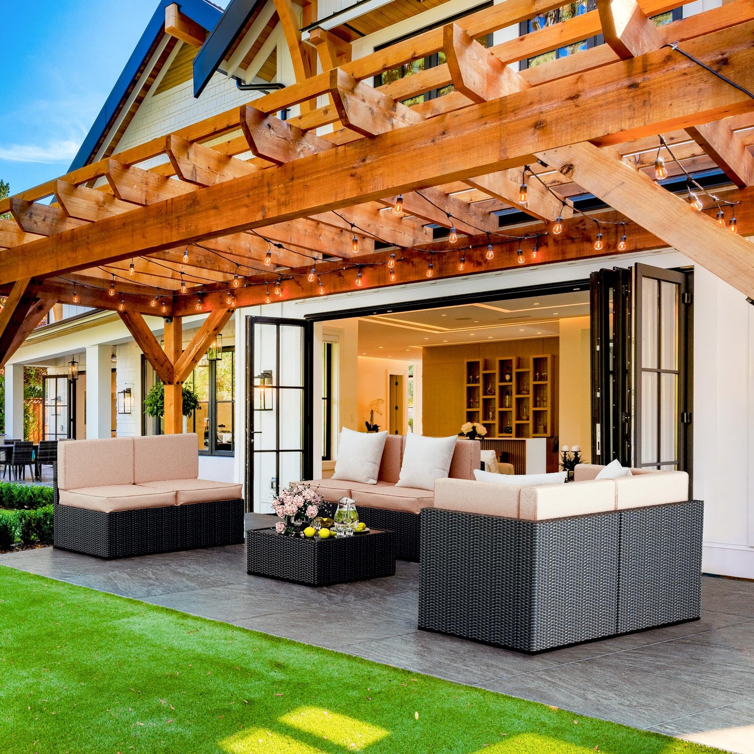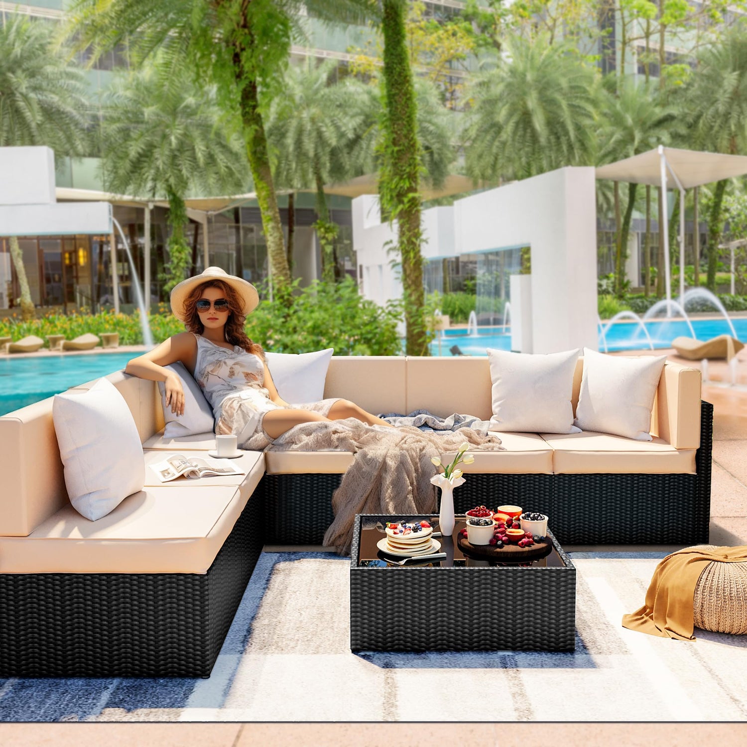 - SECTIONAL & L SHAPED OUTDOOR SOFA: 7 piece patio sectional couch can be freely assembled into a set. You can choose combination based on your need.