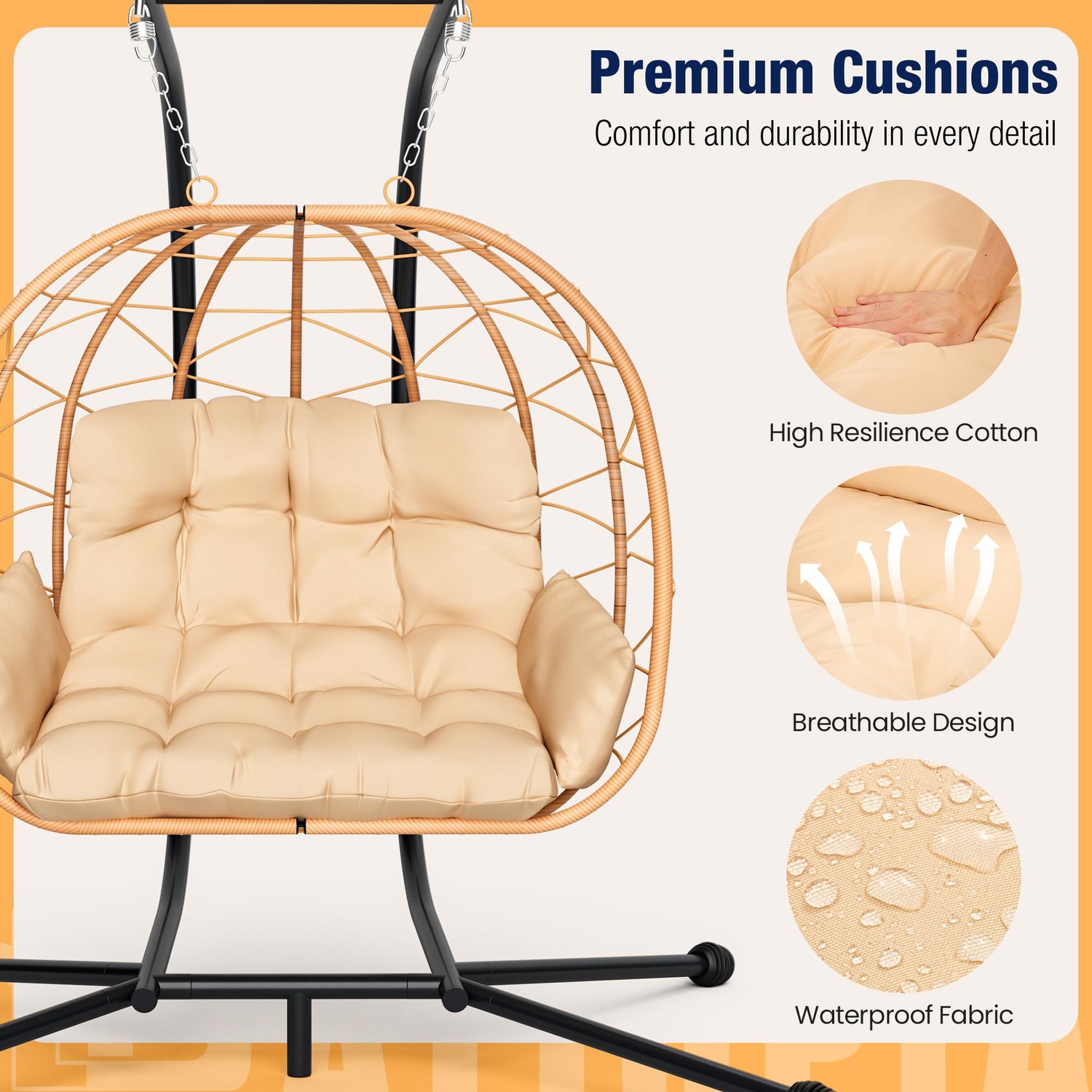 - Premium All-Weather PE Rattan: Crafted with durable, UV-resistant egg chair outdoor. Waterproof and long-lasting, ideal for both outdoor and indoor settings
