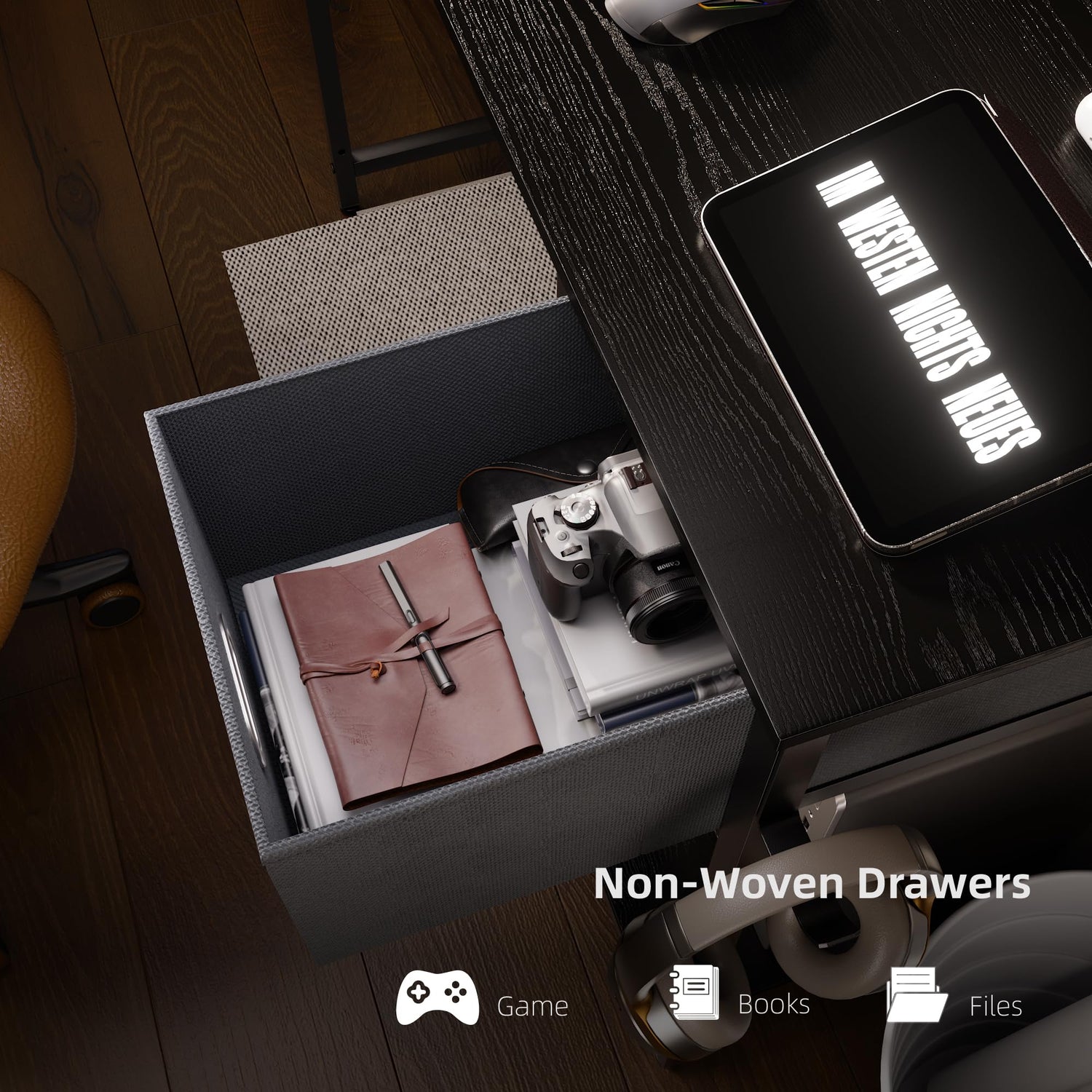 - Ample storage space -- Storage capacity: 1 non-woven drawer (0.59 cubic feet), 1 computer case stand (1.83 cubic feet), 2 hanging hooks (for storing your backpack and headphones).
