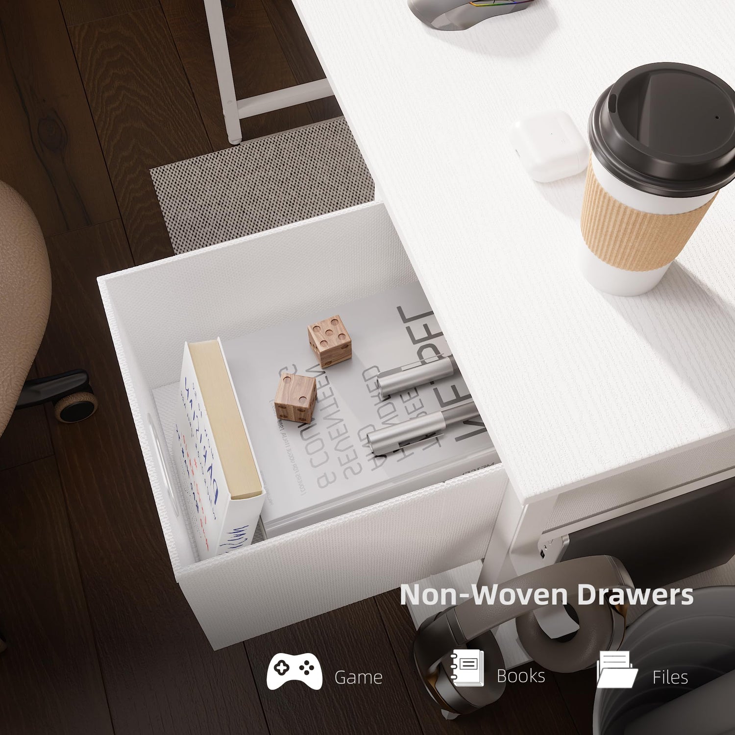 Pamray 39 Inch Computer Desk with Monitor Stand Small Home Office Desks with Non-Woven Storage Drawer for Bedroom Study Table Writing and Work Desk White,White Leg