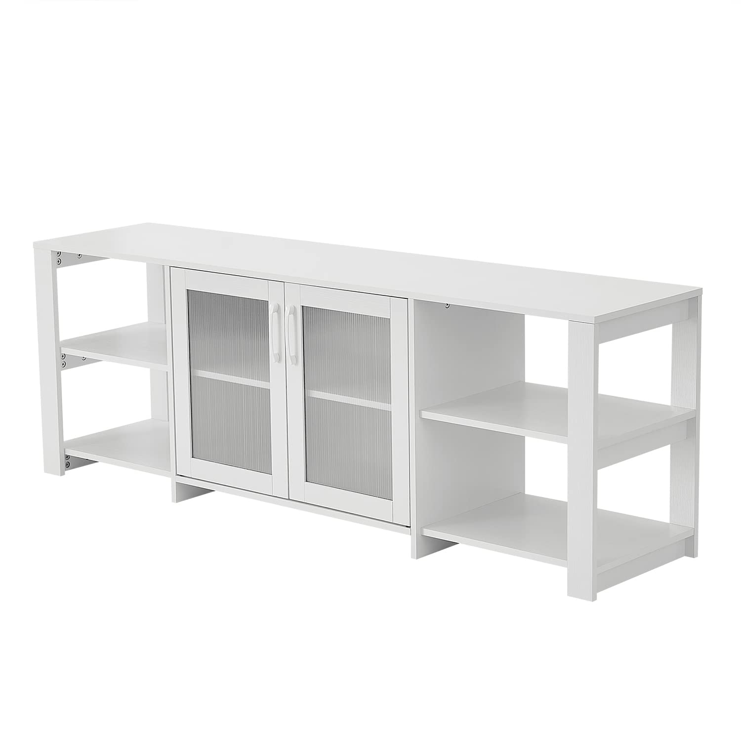 Panana 2 Doors TV Stand Television Stands Cabinet 4 Open Cubby Storage for Living Room for TVs up to 70 Inches (White)