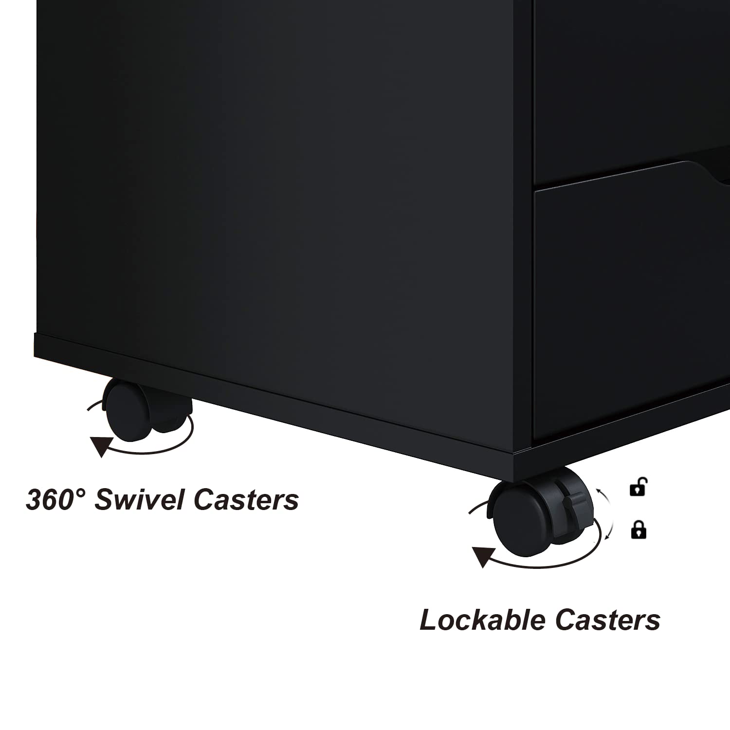 Panana 5/7 Drawer Chest, Wooden Tall Dresser Storage Dresser Cabinet with Wheels, Office Organization and Storage, Bedroom Furniture (Black, 7 Drawer)