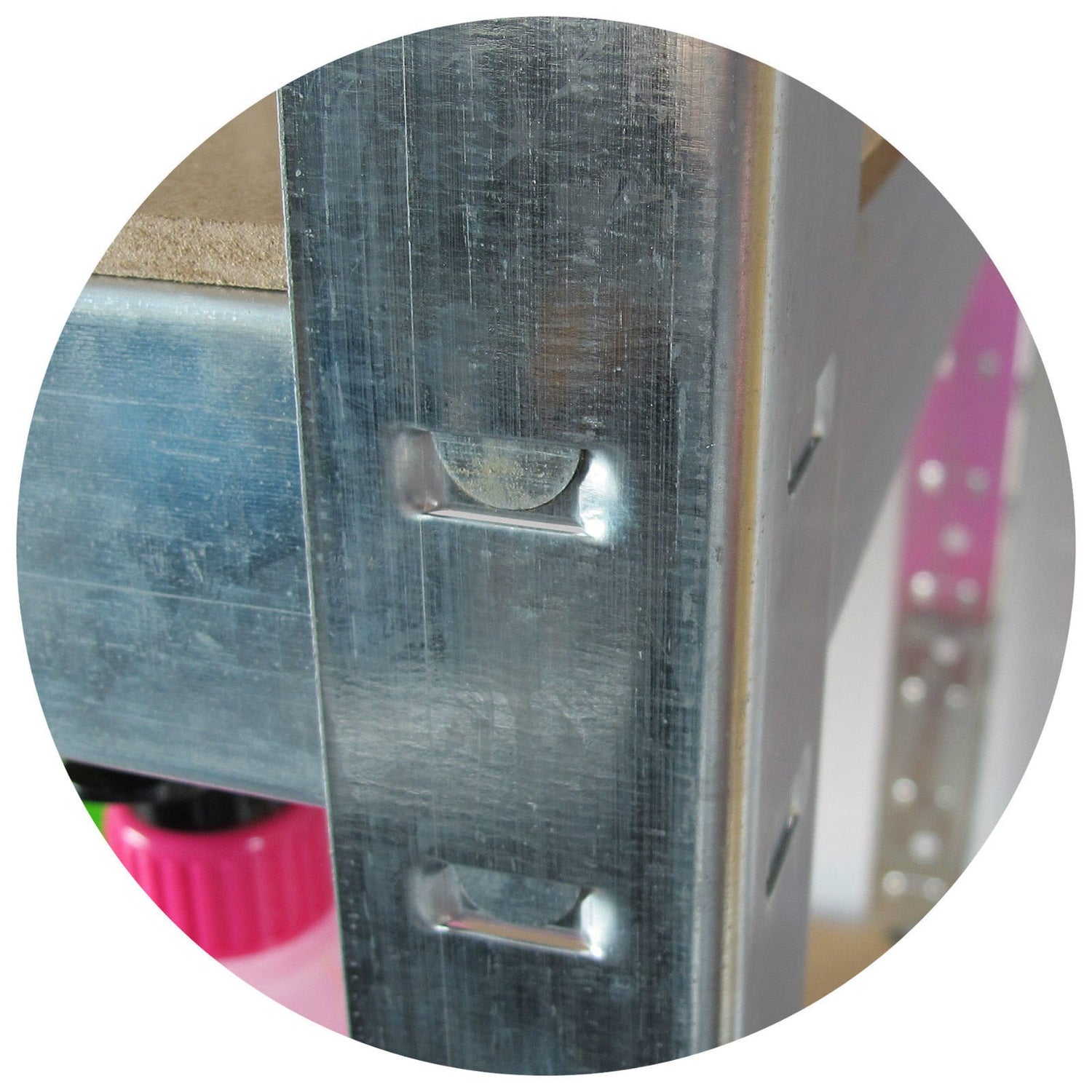 Galvanised steel shelving supports with high-density shelves. Ideal for storing tools and equipment. Each galvanised shelving unit holds up to 175kg per shelf.This garage shelves have a boltless design and can be easily constructed with no bolts.