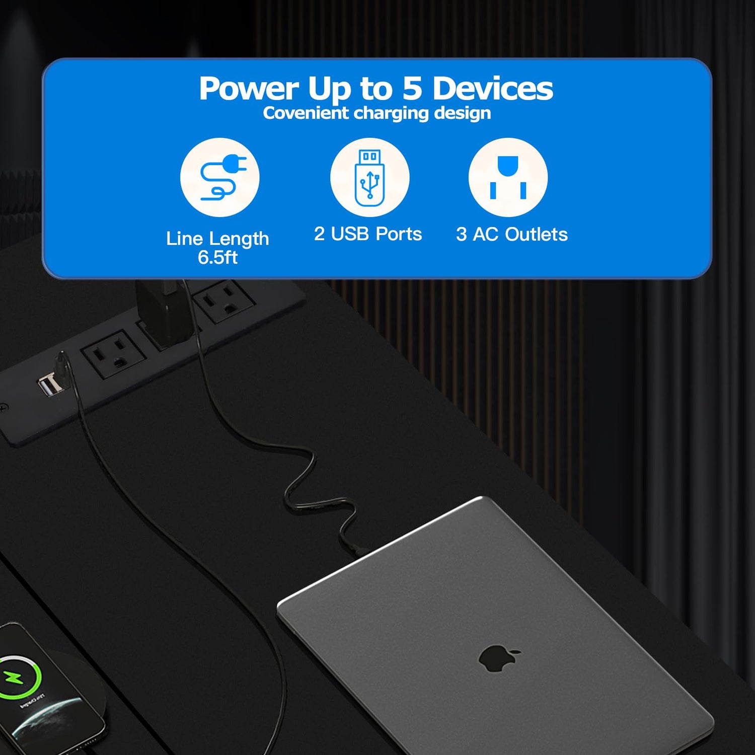 - Convenient Charging: Equipped with 2 USB charging port and 3 power outlets, this desk makes it easy to keep your devices powered up and within reach. Say goodbye to tangled cords and searching for outlets