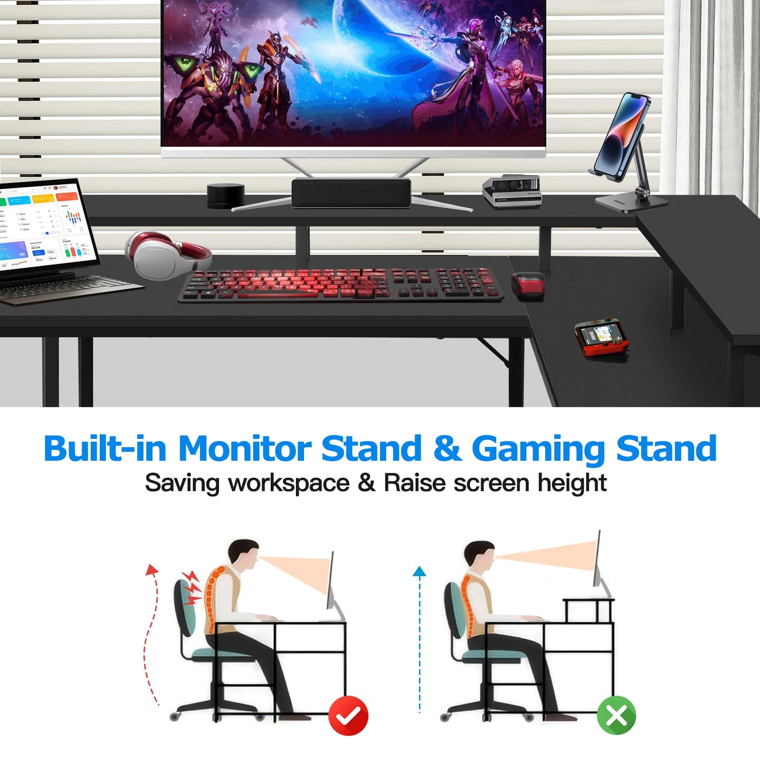 - Reversible L Shape Desk: With reversible design, this home office desk can be installed in either L Shaped or Long desk according to fit your space and needs. The tabletop stand and monitor stand provide extra storage space for your monitors, gaming accessories or office supplies