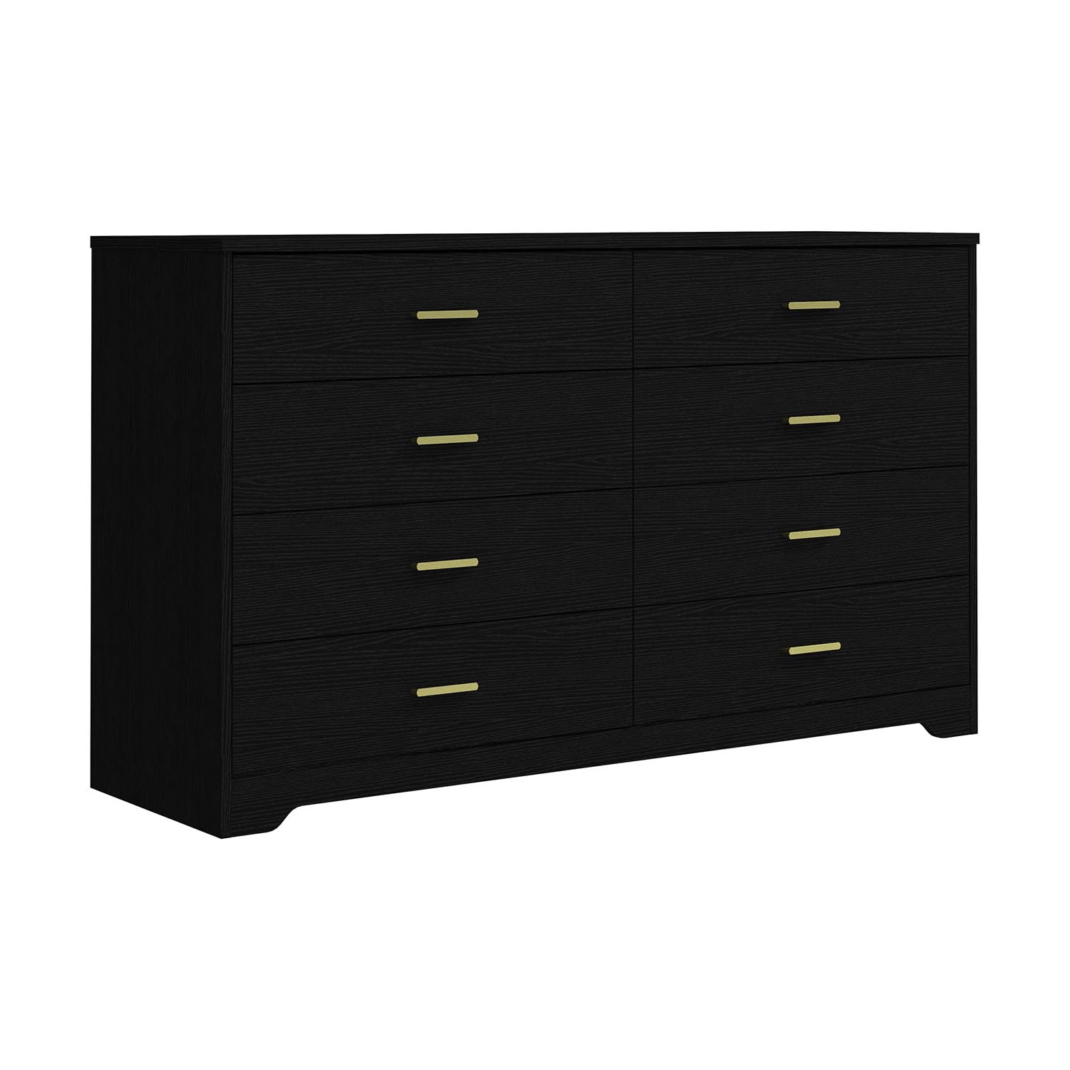 Panana 8 Drawer Wood Lateral Dresser, Big Wide Chest of Drawers Storage Organizer with Metal Gold Handles Home Bedroom (Black)