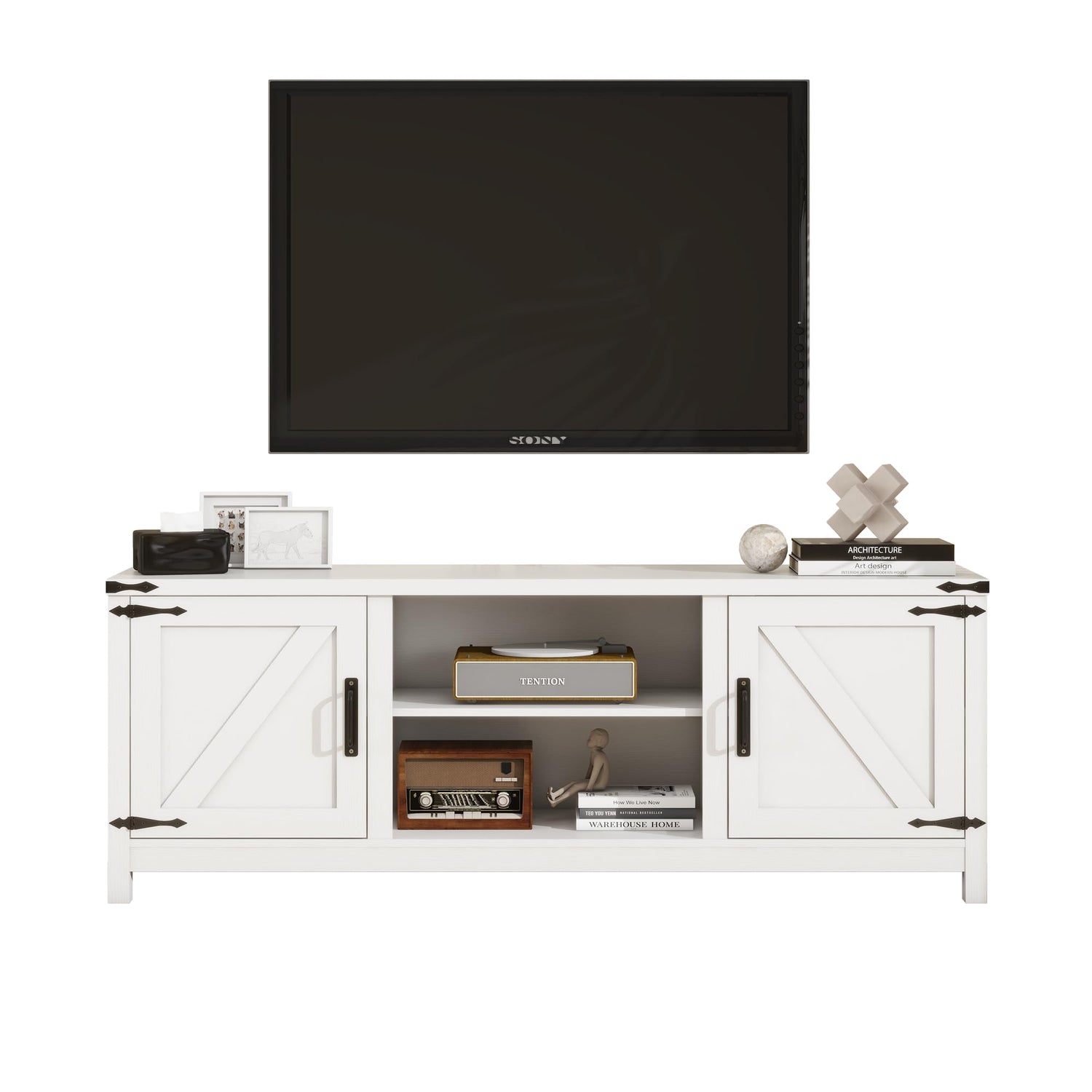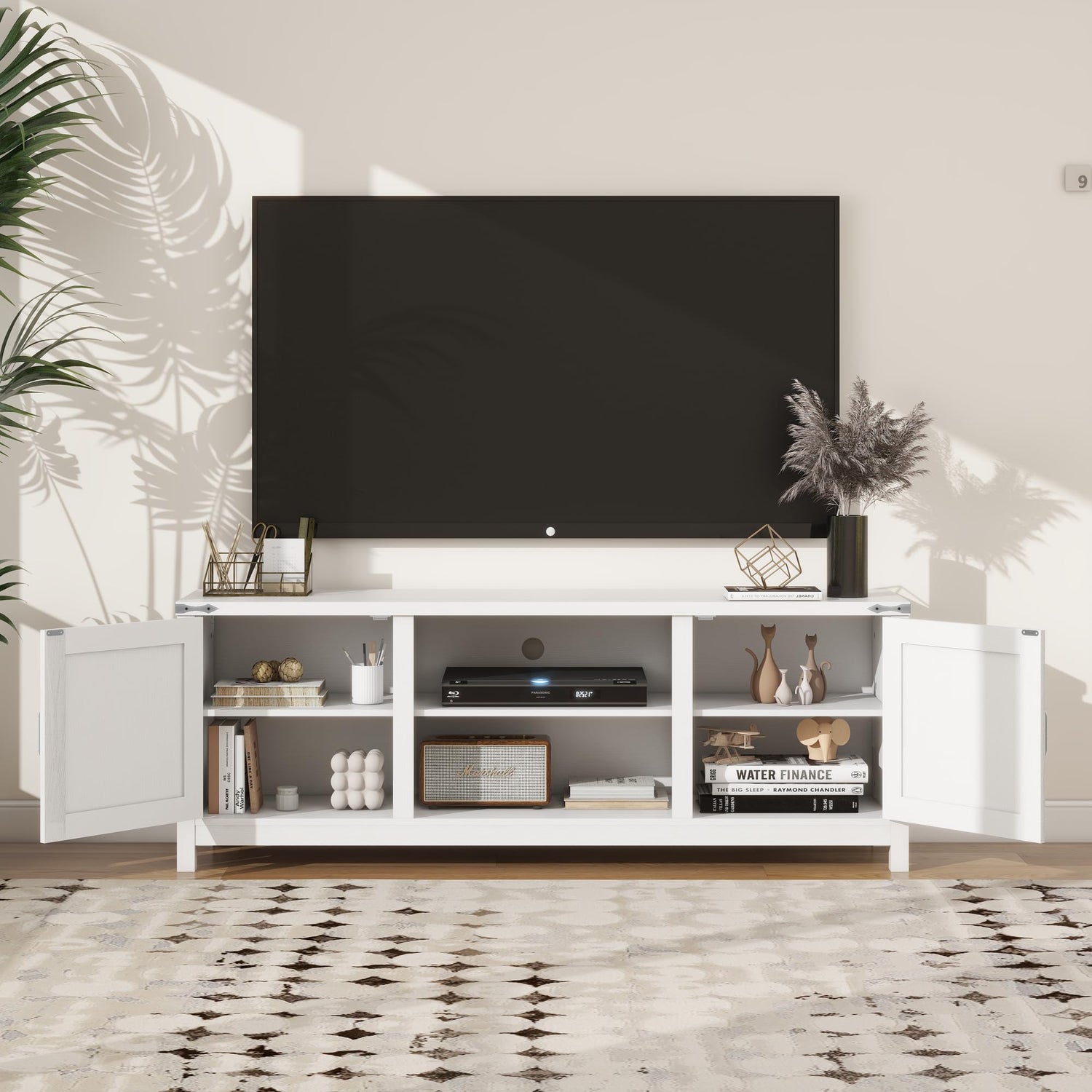 Panana Modern Farmhouse TV Stand for 65 inch TV, Entertainment Center with Storage and Open Shelves, Wood TV Stands TV Table Stand for Living Room, Bedroom (White, for 32"-65" TV)
