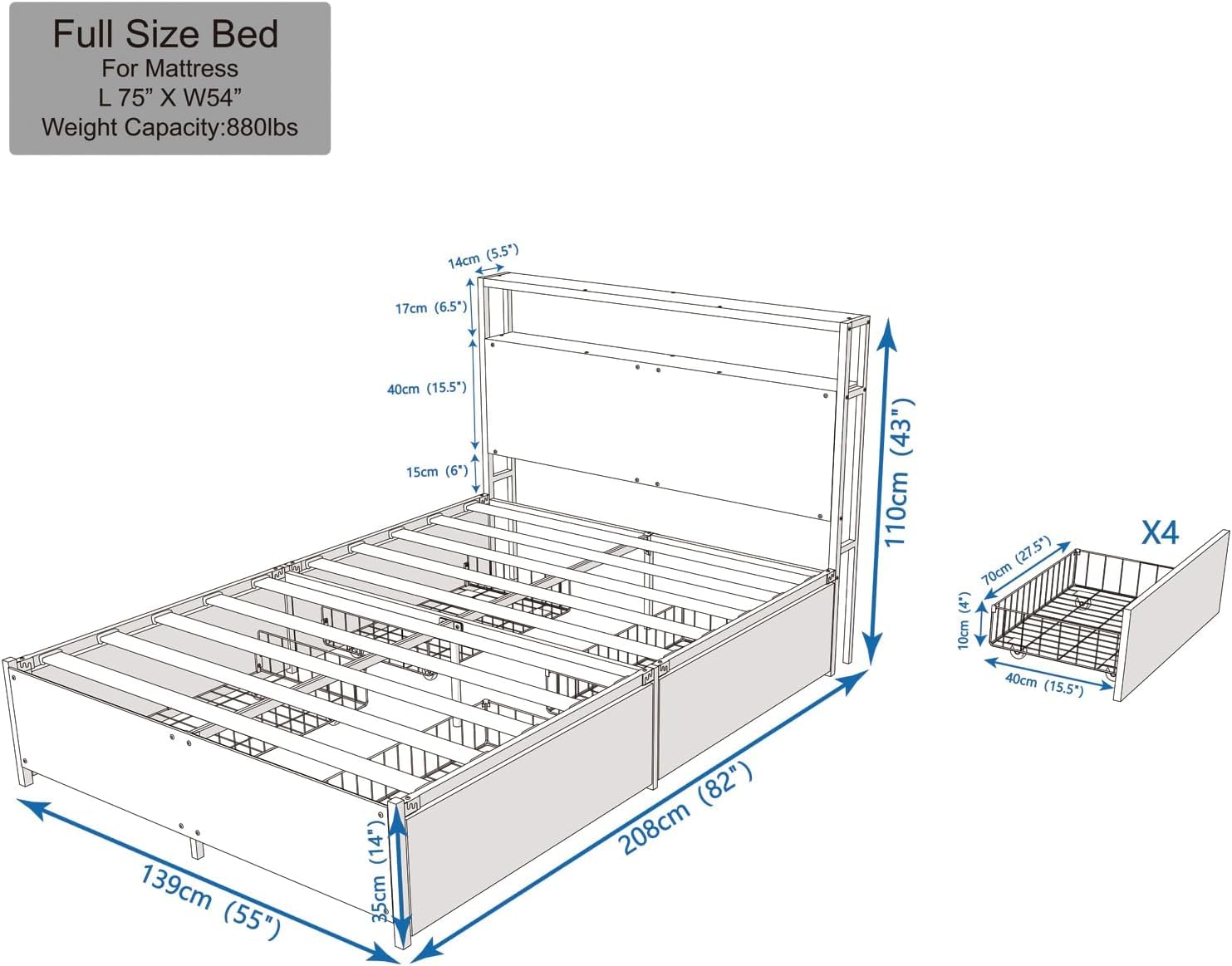 - 【4 Storage Drawers】 This bed frame comes with 4 spacious drawers, providing ample storage space for bedding, clothes, or other items, helping you keep your bedroom tidy and organized.