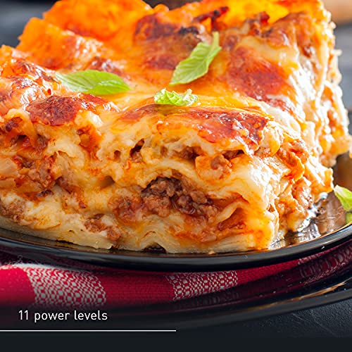 - Microwave Cooking Made Easy: 1200W black microwave with 11 power levels, smart controls, 3-level popcorn button, and more for easy cooking of dinner and snacks
