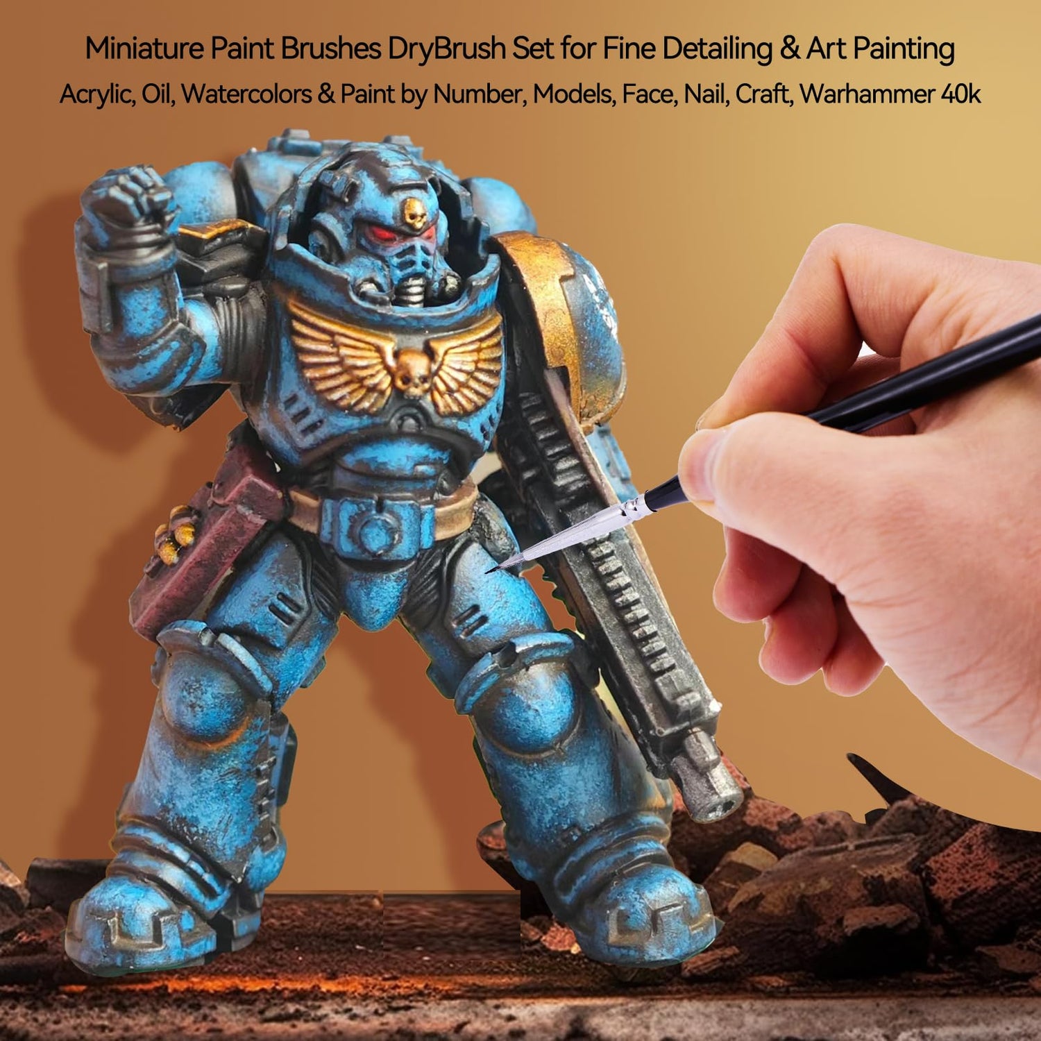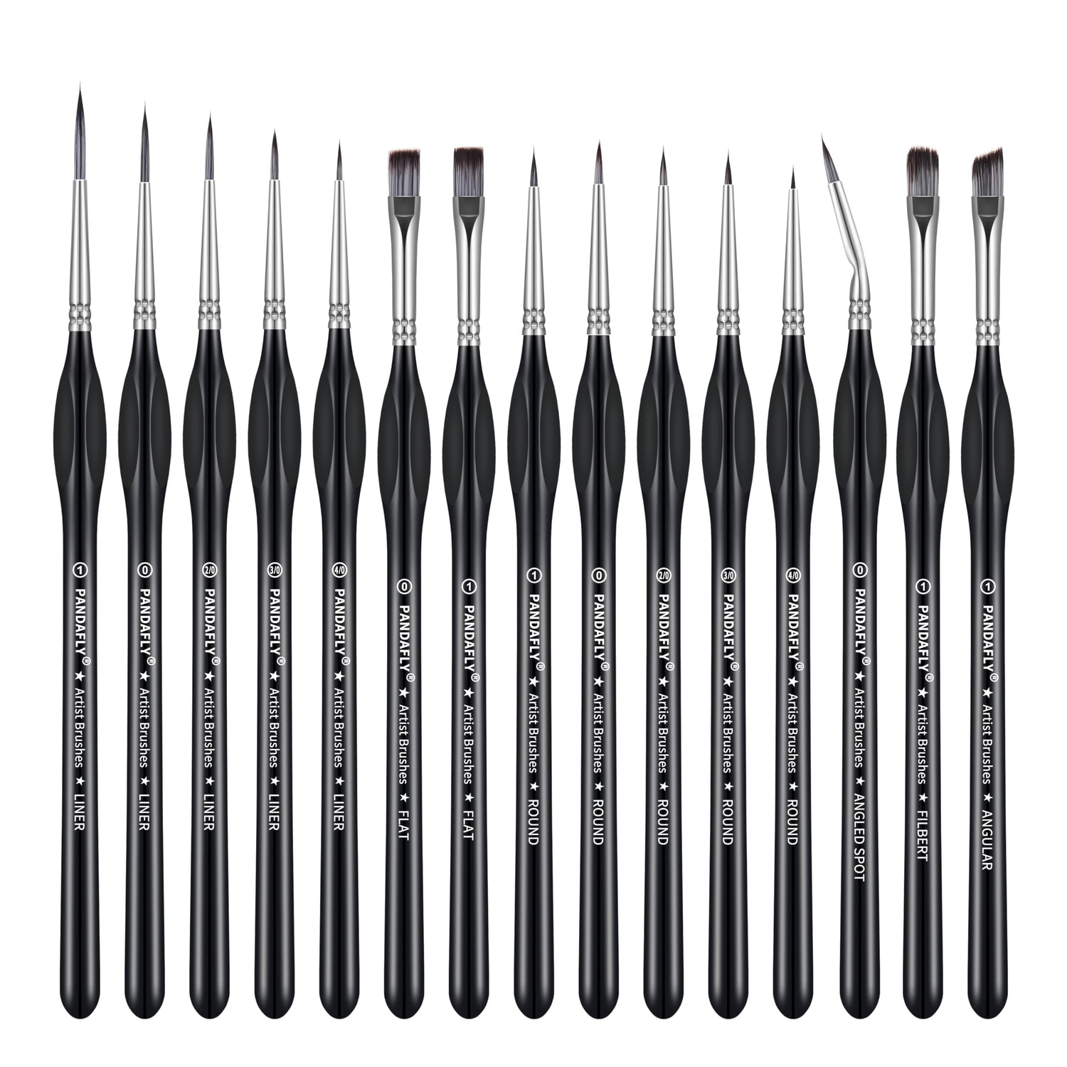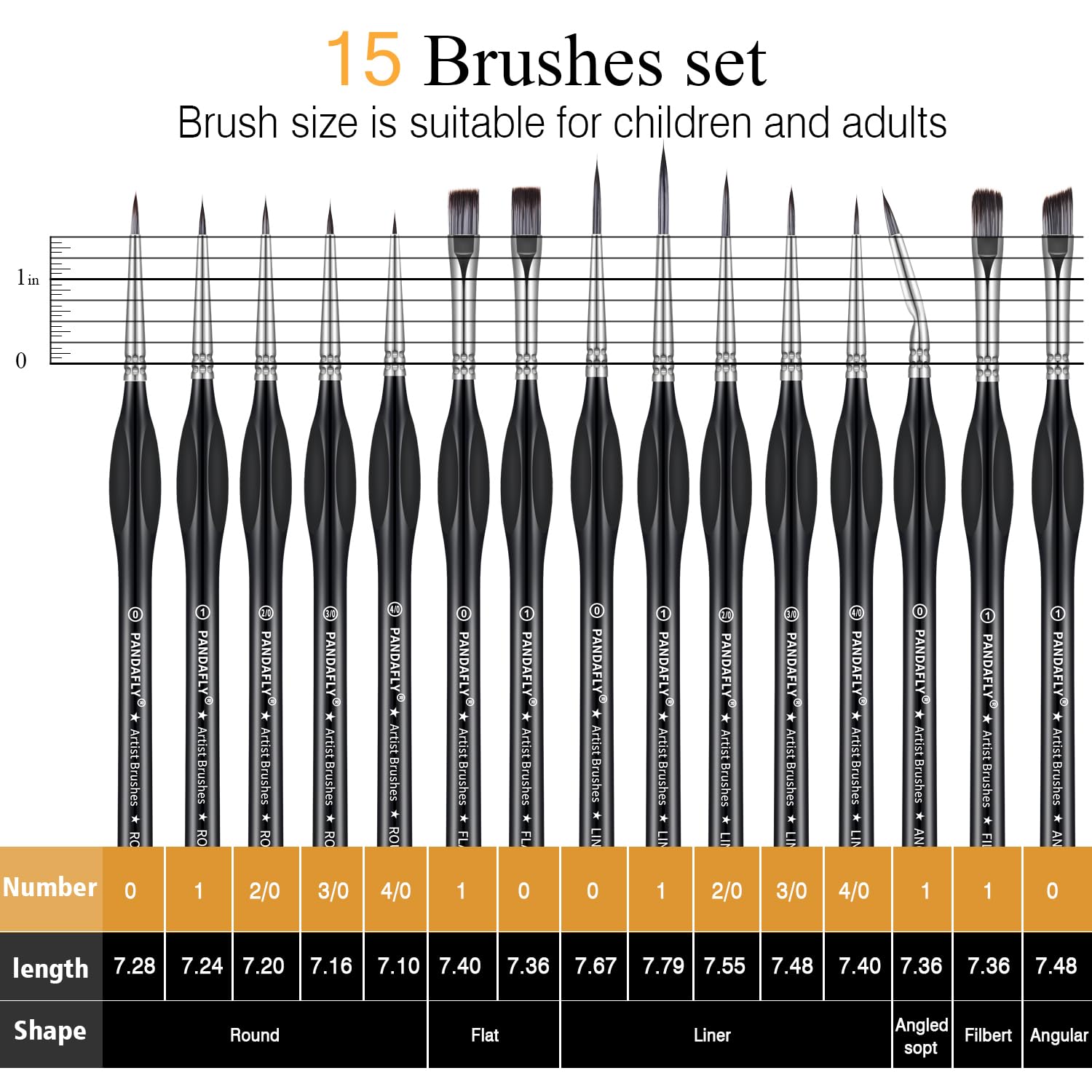 PANDAFLY Detail Paint Brushes Set, 15pcs Miniature Brushes for Fine Detailing & Art Painting - Acrylic, Oil, Watercolors & Paint by Number, Models, Face, Nail, Craft, Warhammer 40k