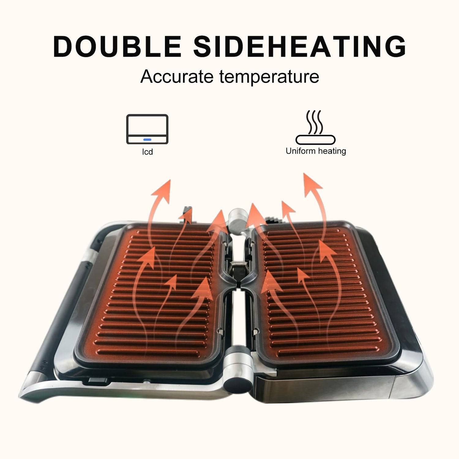 LED Digital Display & Temperature Control – Easily monitor and adjust the cooking time with the built-in LED digital display. Get your food just right every time with precise temperature control, whether you’re grilling, toasting, or searing.
