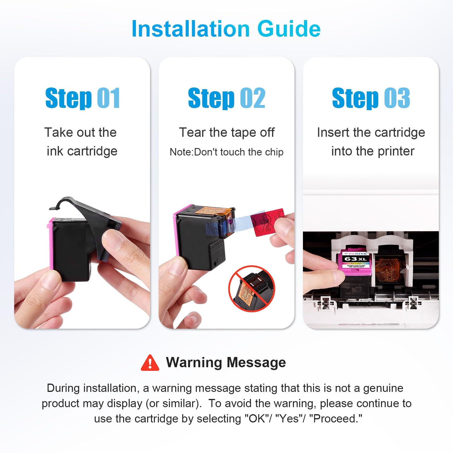 - High Page Yield:Up to 700 pages per 63xl black ink cartridge, 450 pages per 63xl color ink cartridges(depends on printer and usage)