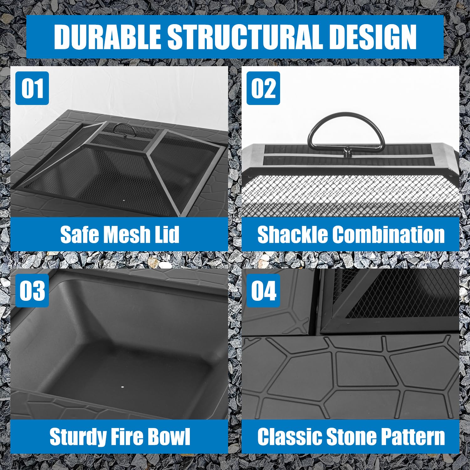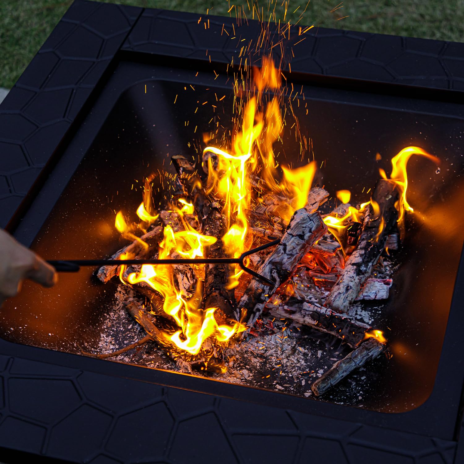 Panovue Multifunctional Fire Pit Table 32 inch Square Metal Firepit Stove Backyard Patio Garden Fireplace for Camping, Outdoor Heating, Bonfire and Picnic