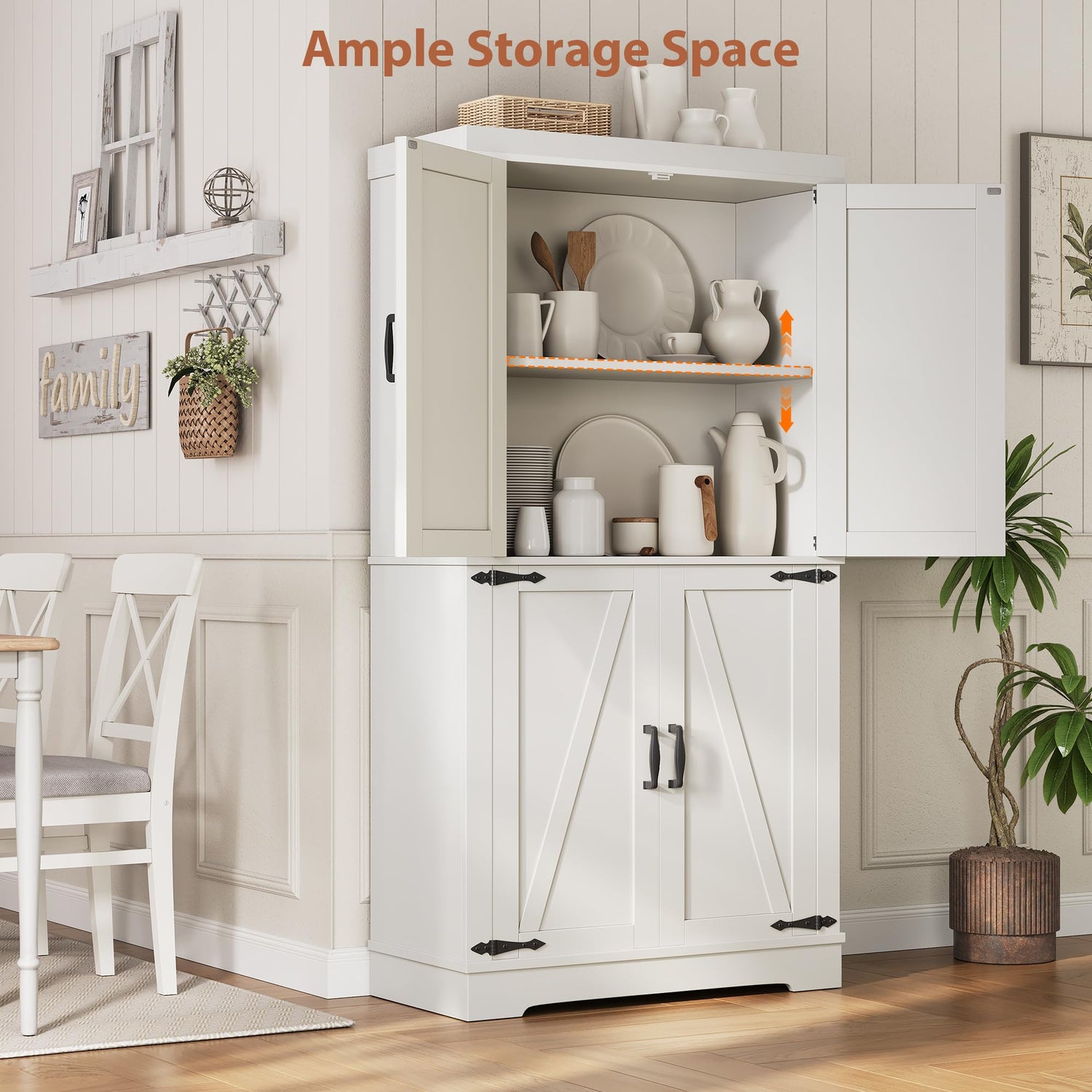 Pantry Cabinet,68'' Kitchen Pantry Storage Cabinet with 4 Doors and Adjustable Shelves, Farmhouse Tall Food Large Wood Pantry Storage Furniture for Kitchen Dining Room,White