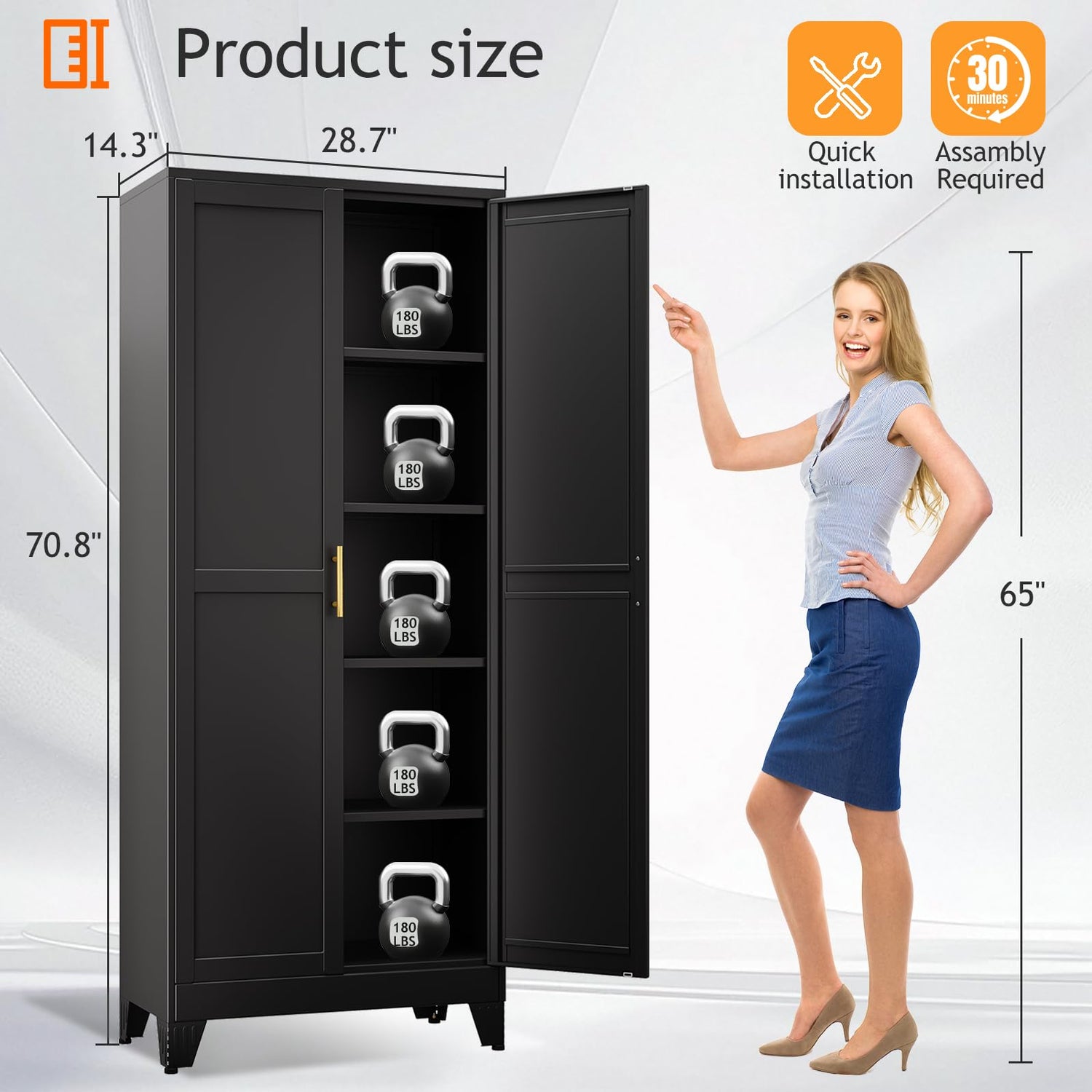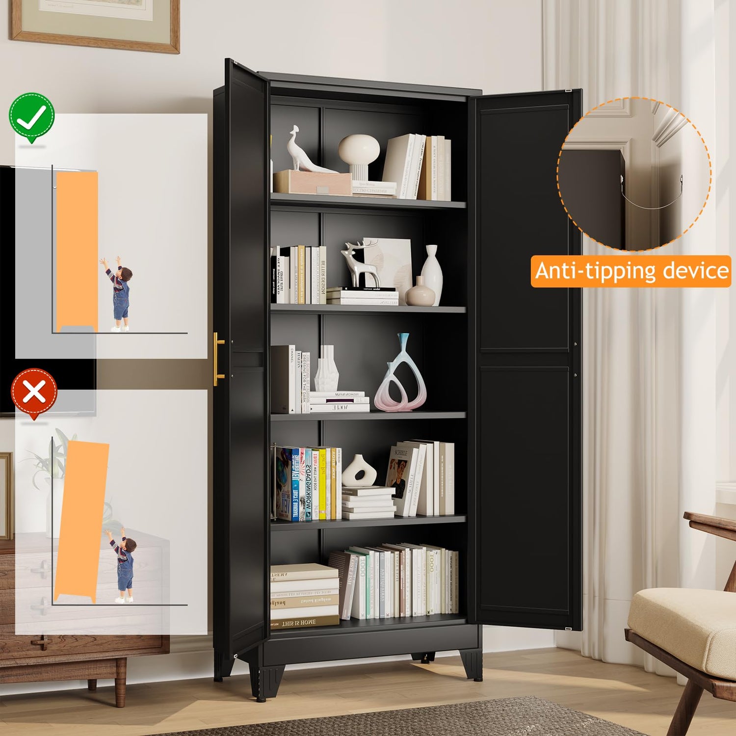 PAOFIN 71" Tall Metal Pantry Storage Cabinet with Doors and 4 Adjustable Shelves, Black Kitchen Food Pantry Cabinets, Tall Freestanding Cupboard for Kitchen, Dining Room or Living Room, Black