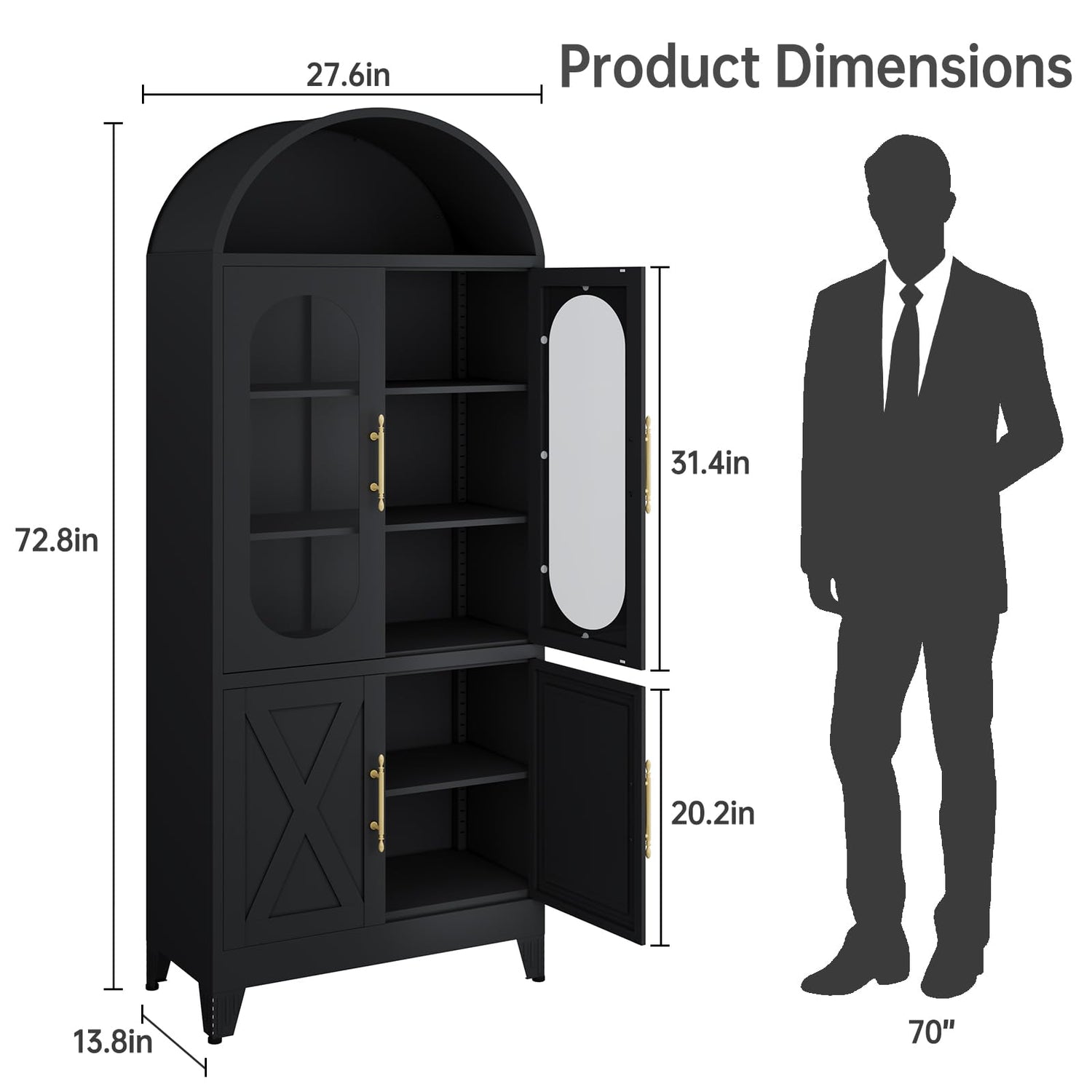 PAOFIN 73" Metal Tall Arched Kitchen Pantry Cabinet, Modern Farmhouse Kitchen Storage Cabinets with 3 Adjustable Shelves, Versatile Cupboard for Kitchen, Dining Room, Black