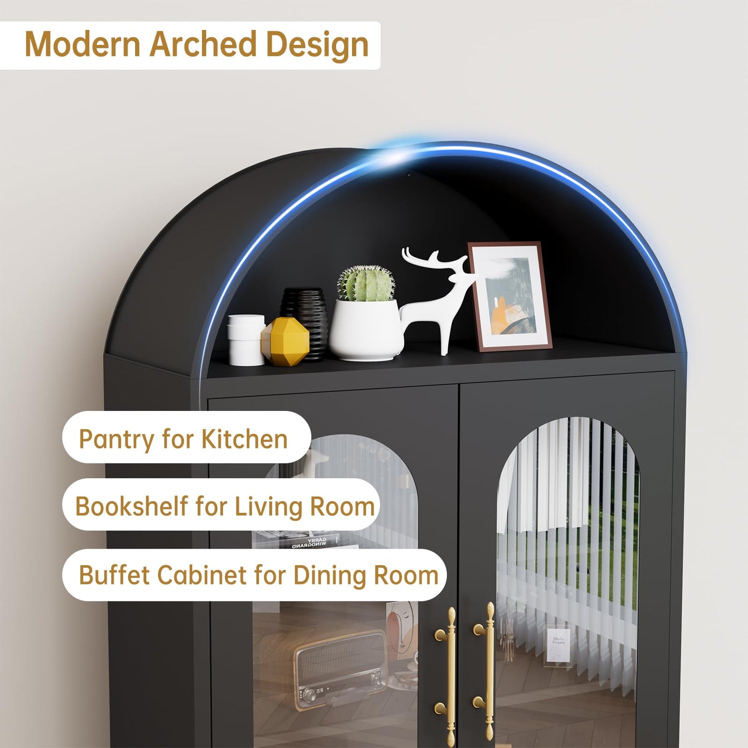 - **Stylish Arched Door Design**: The elegant arched door design not only enhances the aesthetic appeal of this storage cabinet but also makes it a standout piece in any room. Ideal for displaying items in an arched display cabinet or storing supplies in a pantry cabinet with glass doors, this cabinet combines functionality with beauty.