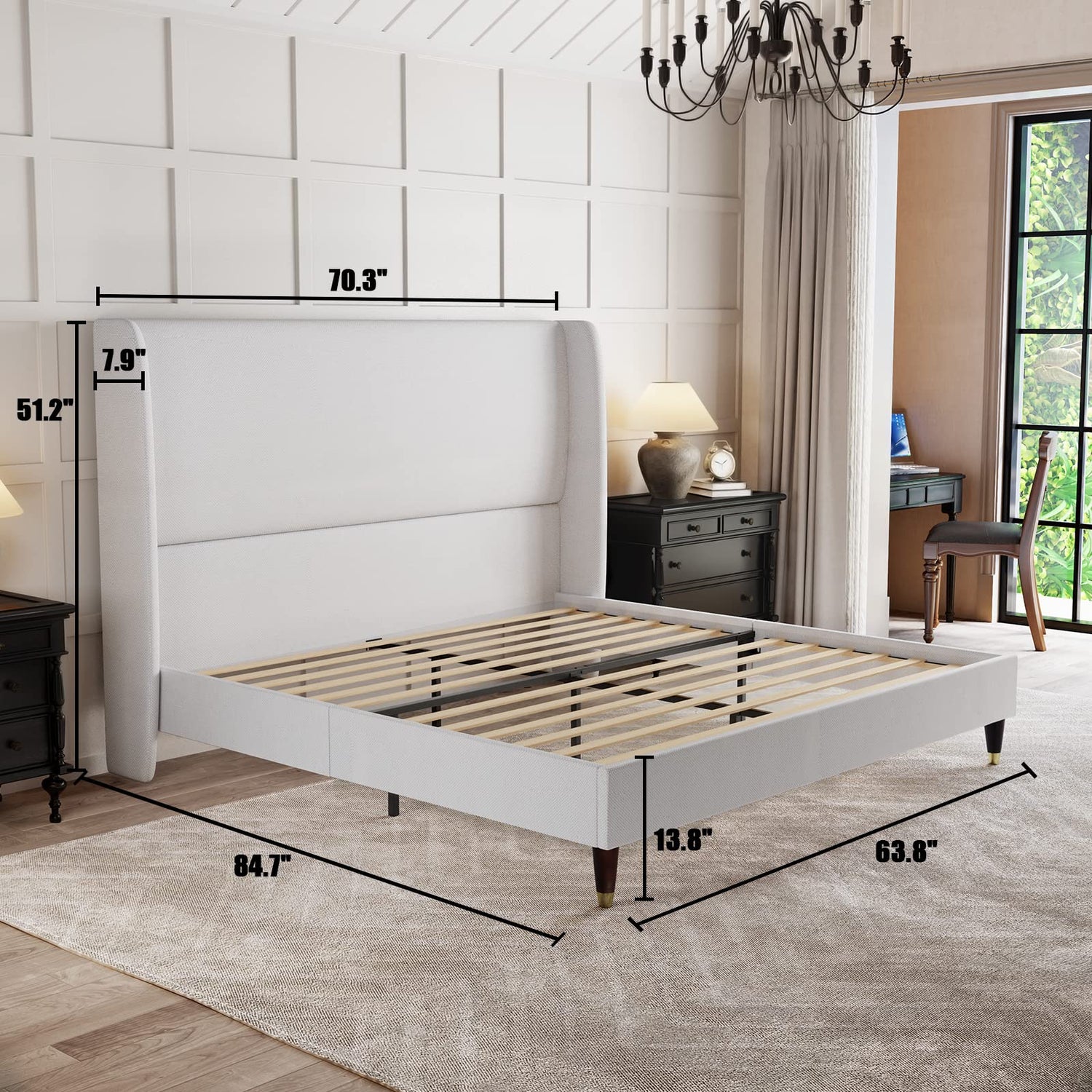 PaPaJet Upholstered Queen Platform Bed Frame with 51.2" High Headboard - Stylish, Sturdy & No Box Spring Needed