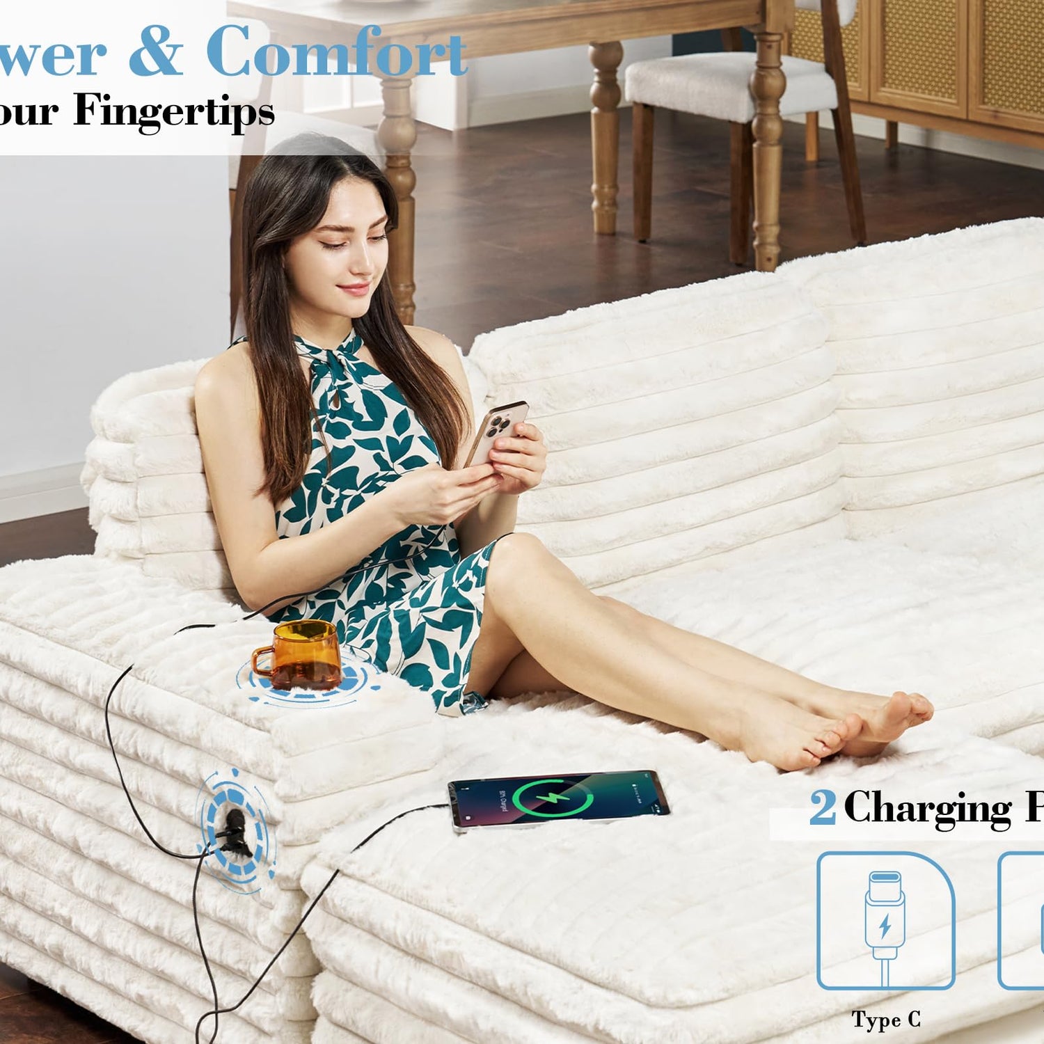 - 【2 in 1 Functional Armrest】The sectional couch features Quick Charge USB and Type-C ports, no need to worry about battery depletion. Enjoy leisure with handy cup holders for drinks, keeping your home time as relaxed as you want.